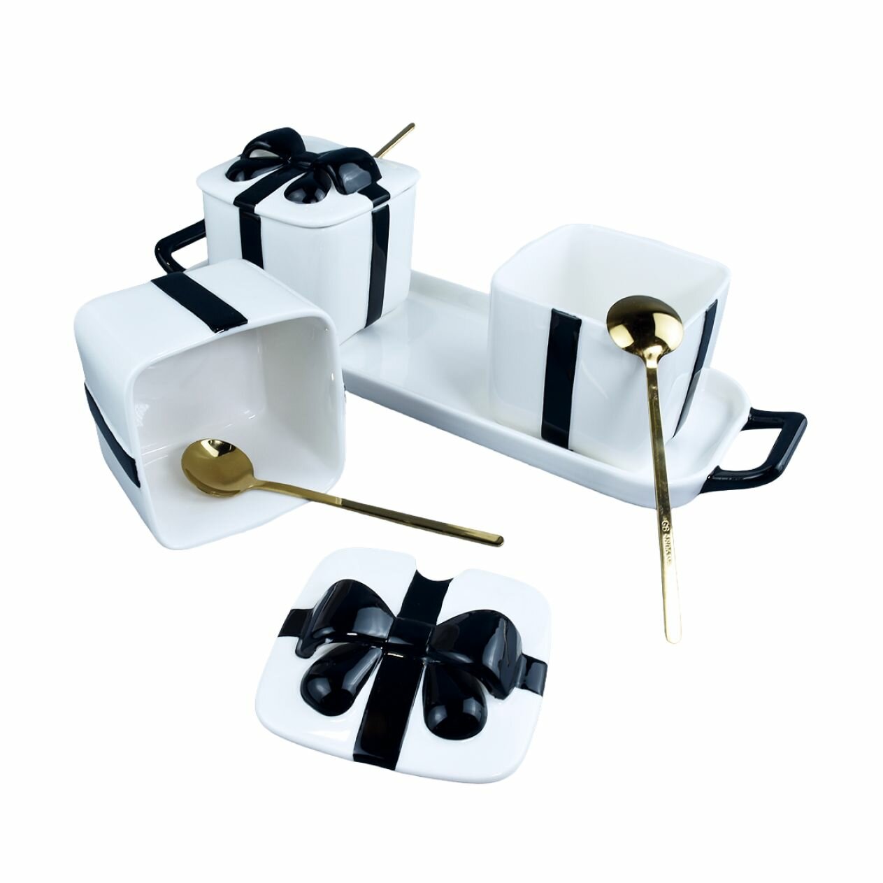 Купить Набор из 3 баночек 350 мл с ложками на подставке «Multicolor» Белый с черным. Фарфор. Подарочная упаковка. Lenardi. с доставкой по всей России.