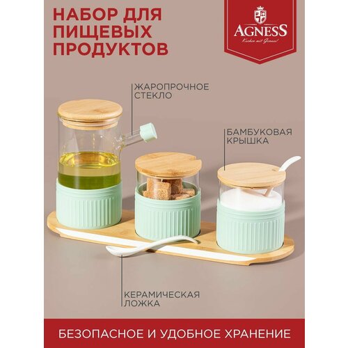 Набор емкости для сыпучих продуктов 887-113 agness native, 10 предметов,8х8 см боросиликатное