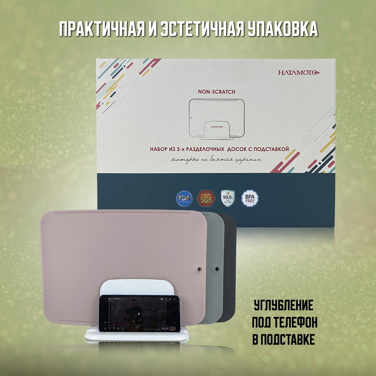 Набор досок разделочных Hatamoto 3 шт. и подставки (JH-3000), термопластичный полиуретан, не оставляет реза ножа: сравнение цен, характеристики, фото, актуальное наличие и цены.