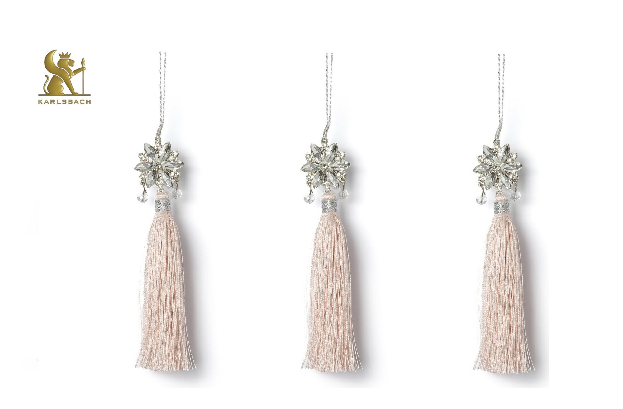 Набор из 3-х розовых кисточек с серебряным цветком 15 см