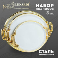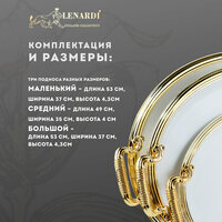 • ЧПривлекательный и удобный набор из трех овальных подносов с элегантными ручками из нержавеющей стали - это отличное решение для сервировки стола и подачи блюд на любом торжестве или повседневном ужине. Овальные формы подносов придают им изысканный вид, а стальные ручки обеспечивают удобство в использовании.
