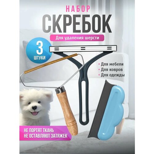 Три скребка для удаления шерсти животных
