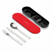 Компактный набор столовых приборов от бренда Guzzini - это отличное решением для завтрака или обеда в офисе, в университете, на пикнике или в поездке. В комплект входит ложка, вилка и нож из высококачественной нержавеющей стали. Изделия можно мыть в посудомоечной машине. Благодаря удобному футляру столовые приборы будут защищены от загрязнения и не затеряются в сумке или рюкзаке.