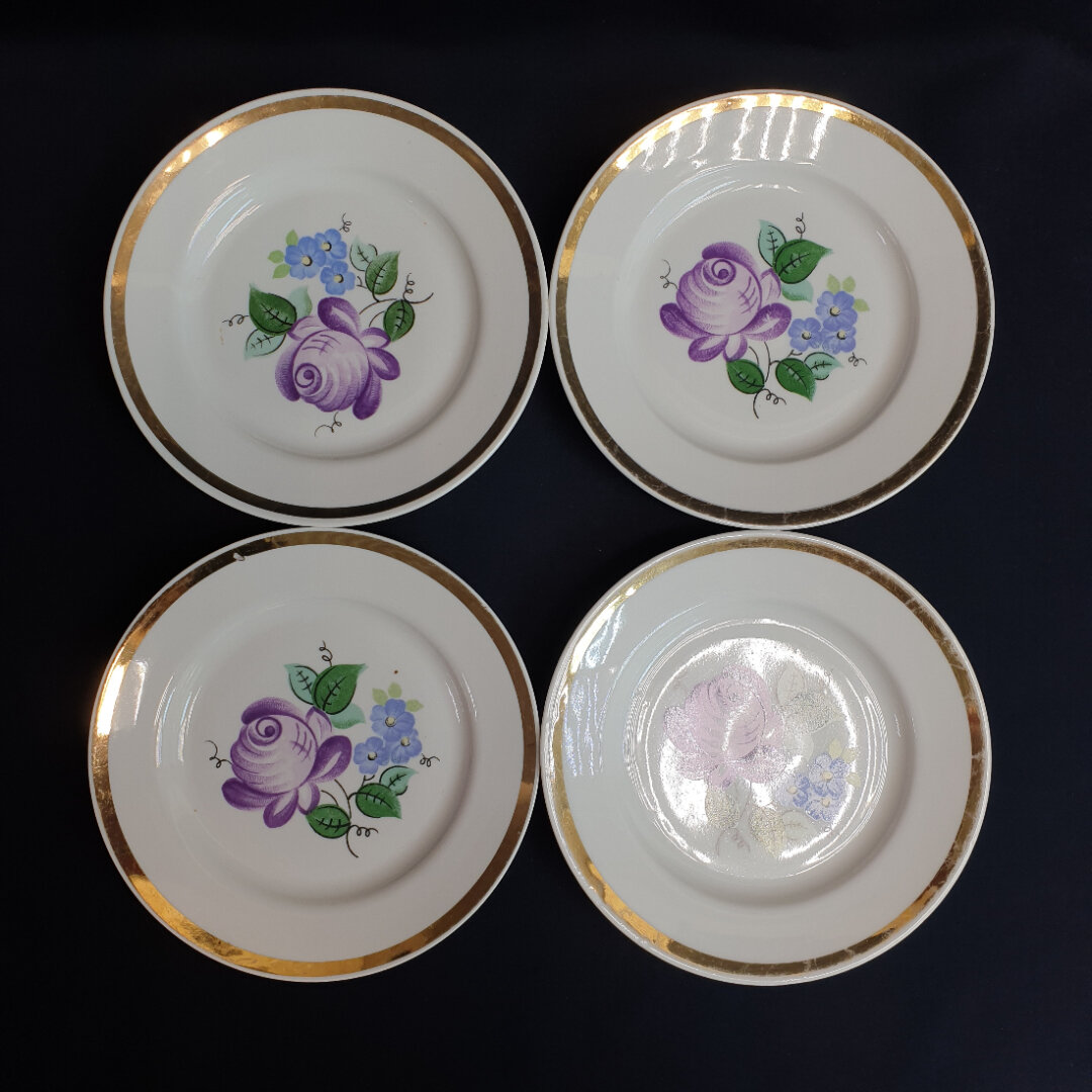 Набор из 4 десертных тарелок Южноуральский, фарфор деколь позолота 17 см, винтаж СССР: сравнение цен, характеристики, фото, актуальное наличие и цены.