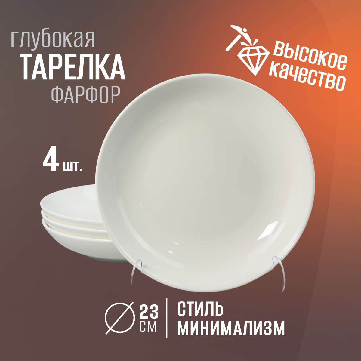 Набор из 4 глубоких тарелок «Elma», 23 см, усиленный край, фарфор, Wilmax England: сравнение цен, характеристики, фото, актуальное наличие и цены.