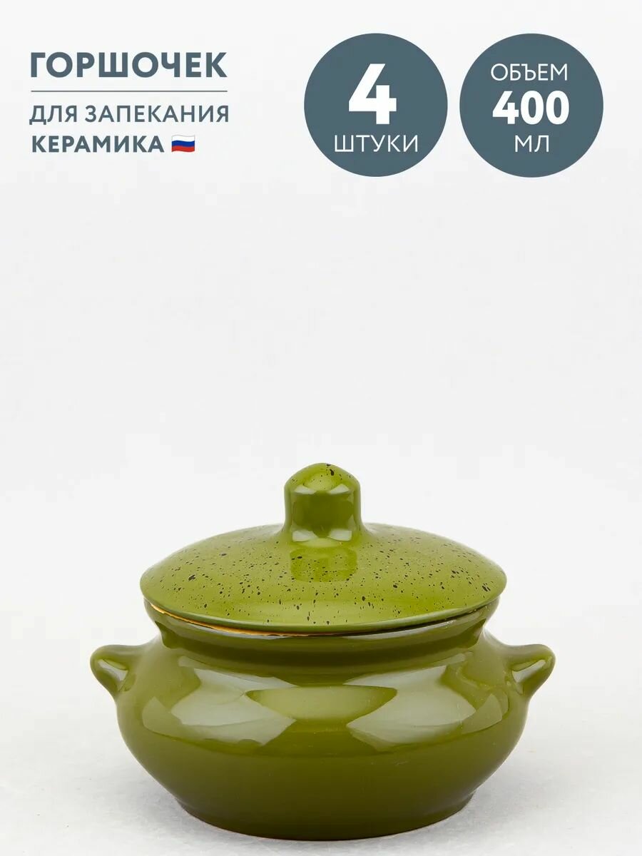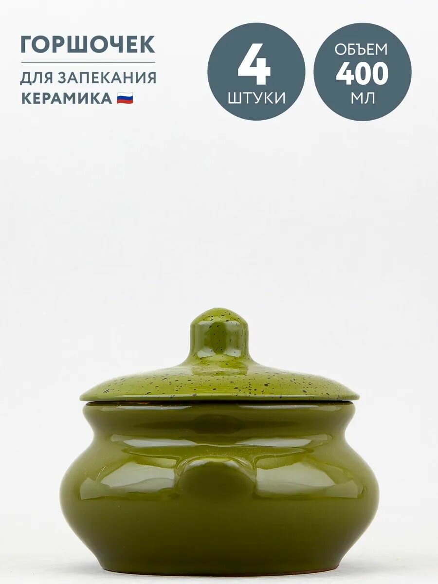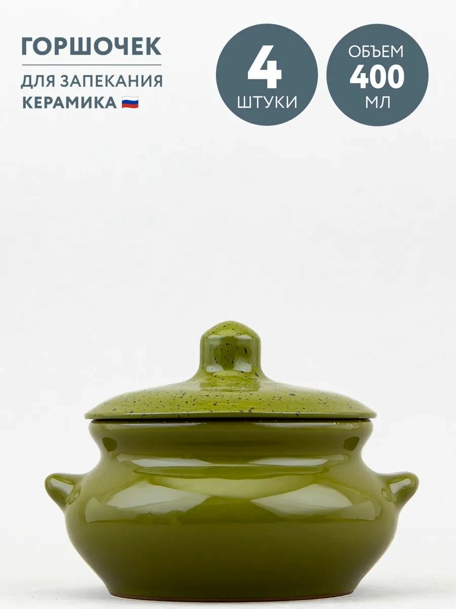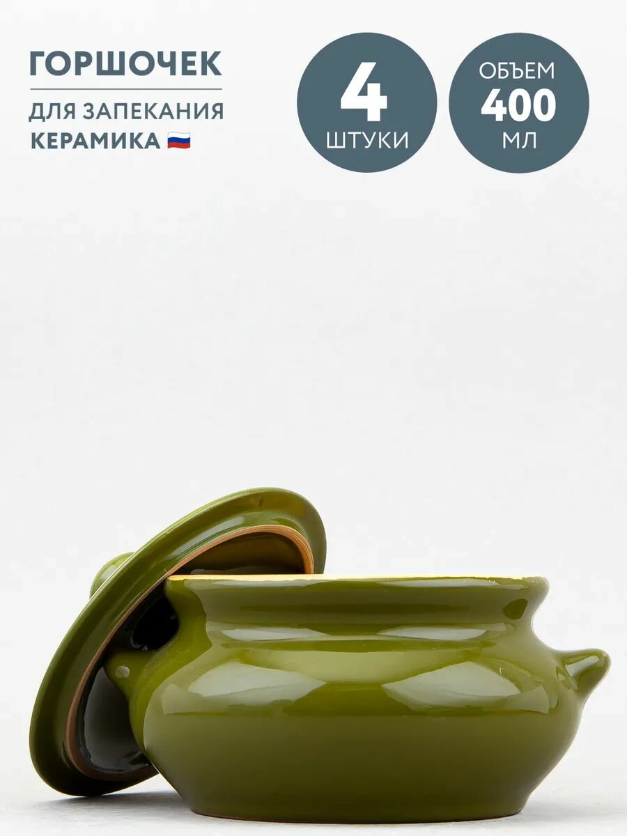 Купить Набор из 4 горшочков для запекания 400 мл Борисовская керамика Оазис с доставкой по всей России.