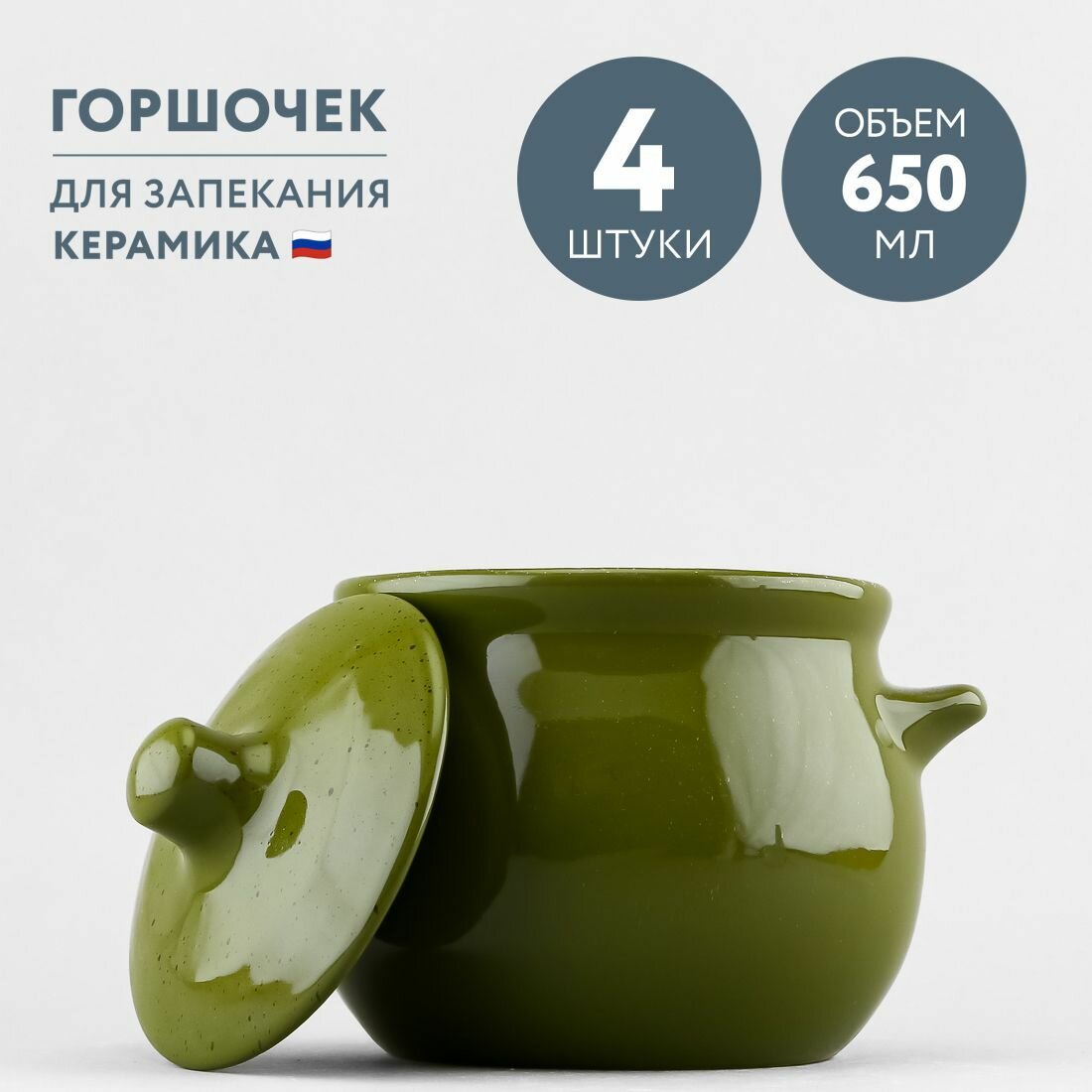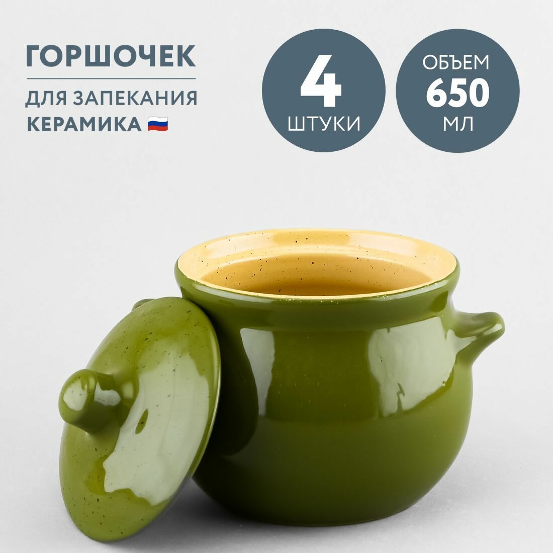Купить Набор из 4 горшочков для запекания 650 мл Борисовская керамика Оазис с доставкой по всей России.