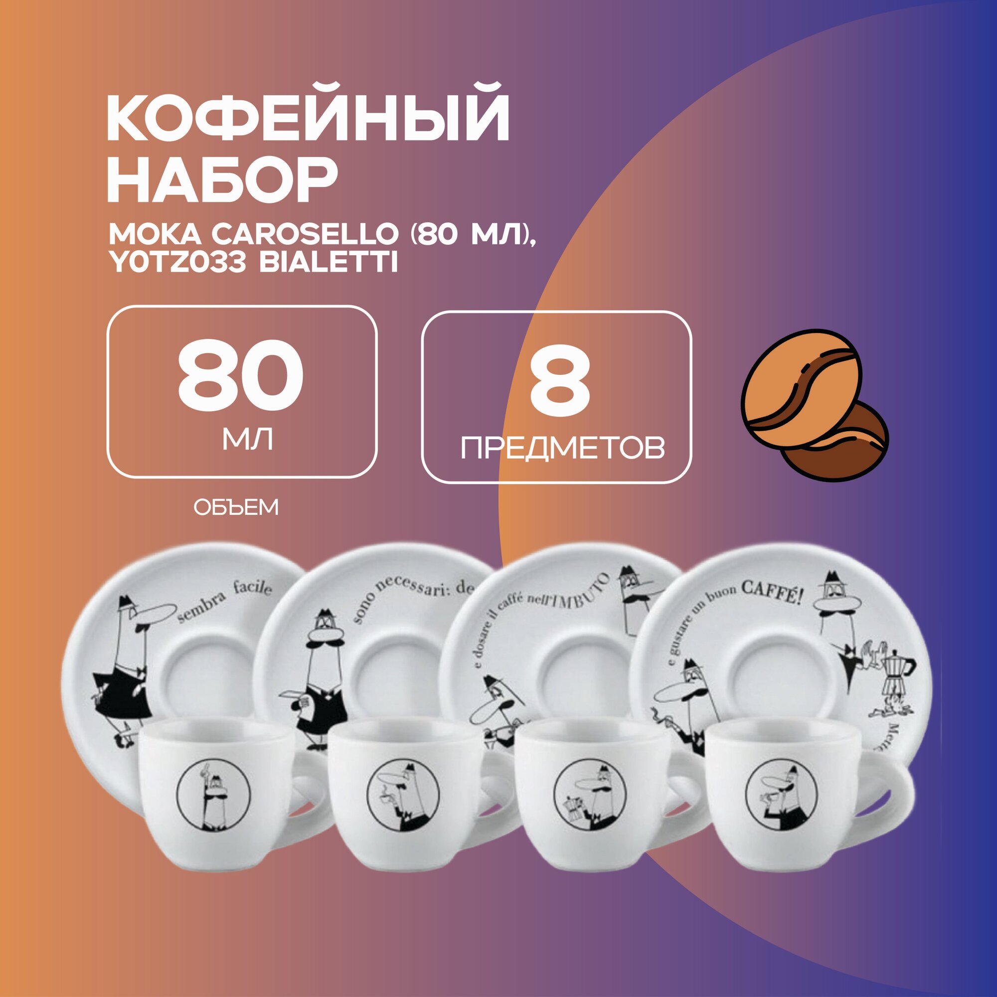 Купить Набор из 4-х кофейных пар Moka Carosello (80 мл), Y0TZ033 Bialetti с доставкой по всей России. Набор из 4-х кофейных пар Moka Carosello (80 мл), Y0TZ033 Bialetti: сравнение цен, характеристики, фото, актуальное наличие и цены.