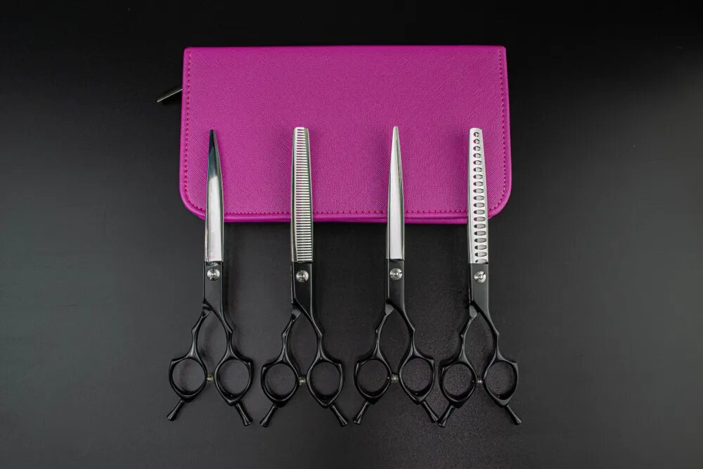 Купить Набор из 4-х ножниц для груминга, набор ножниц в чехле MOON BASE Азия Черный с доставкой по всей России.
