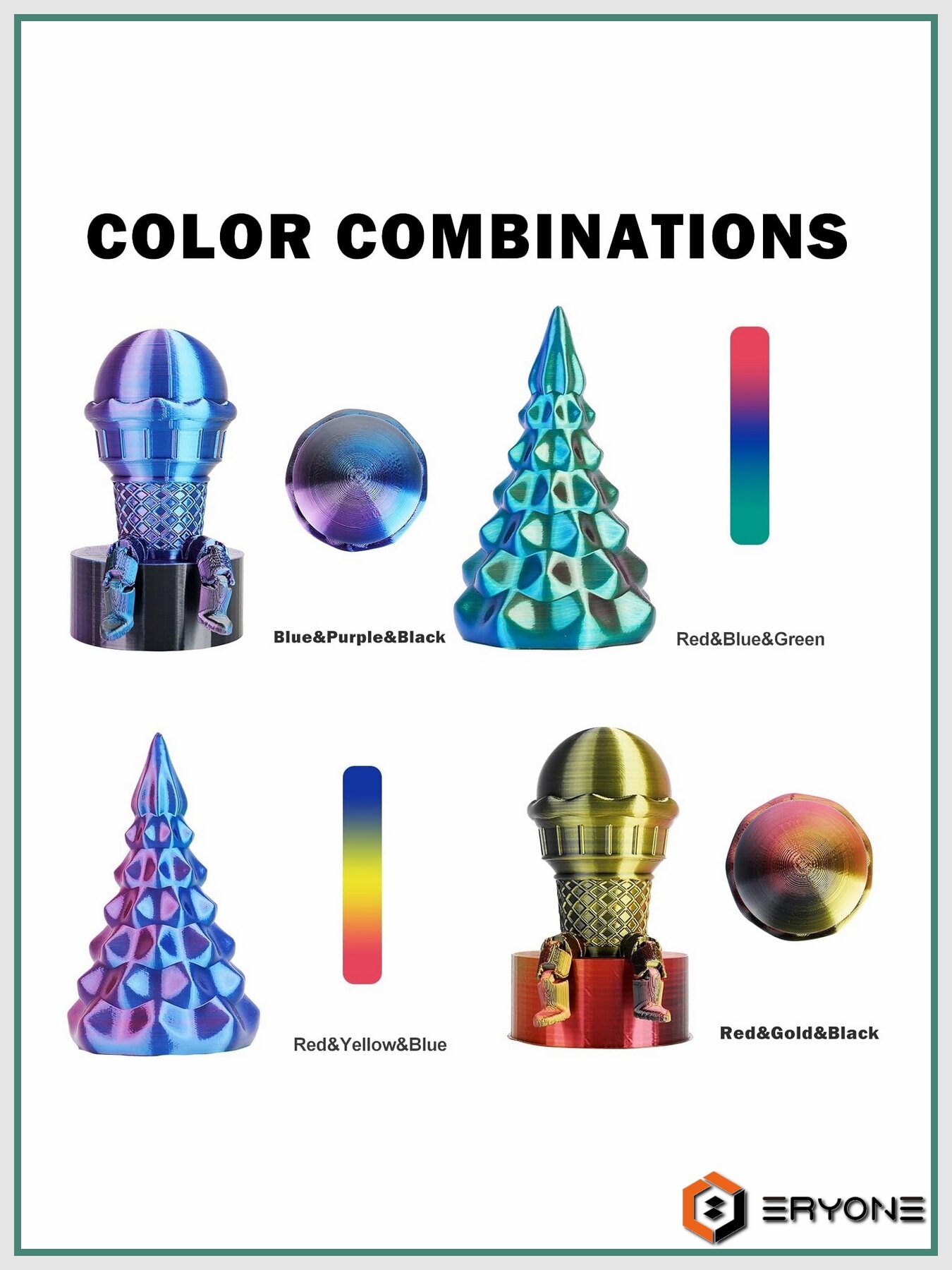 Купить Набор из 4 катушек 0.25 кг пластика для 3D принтера PLA Silk Tri Color 1,75 мм (Eryone) разных цветов — Тип 5 с доставкой по всей России.
