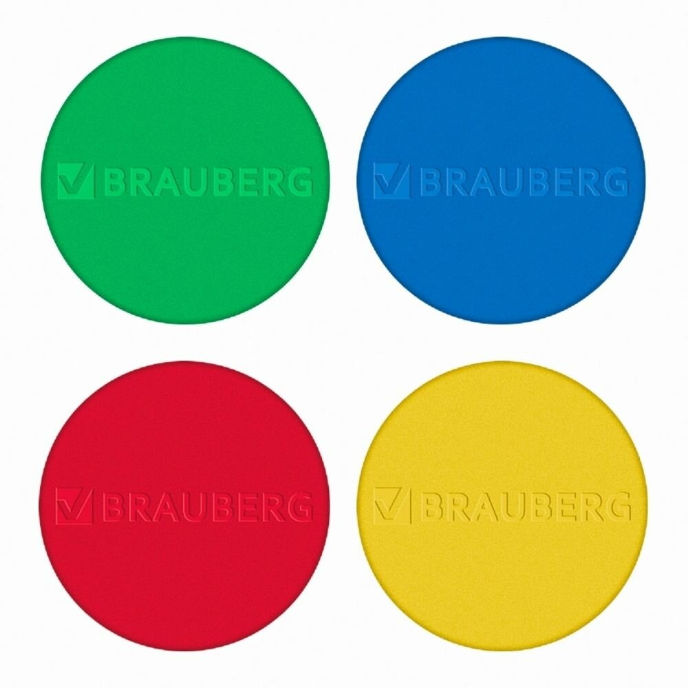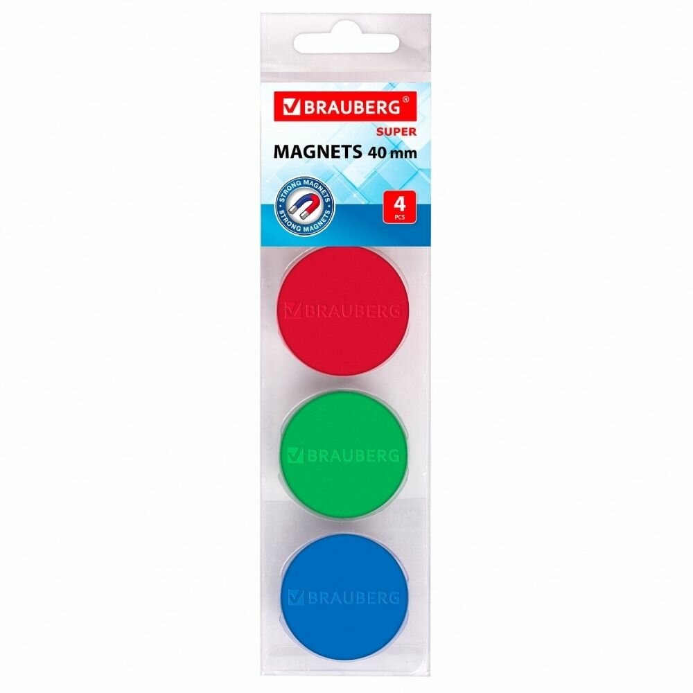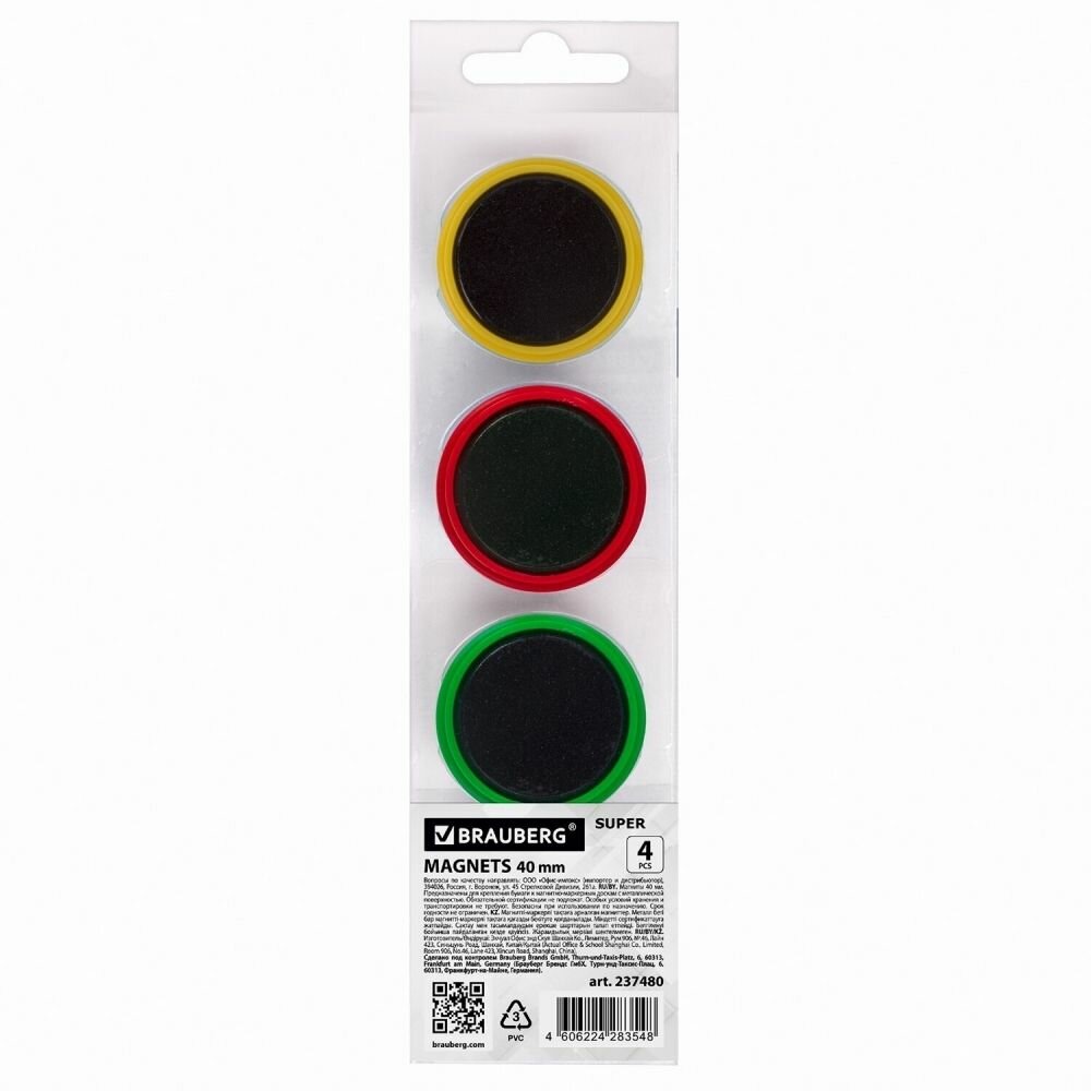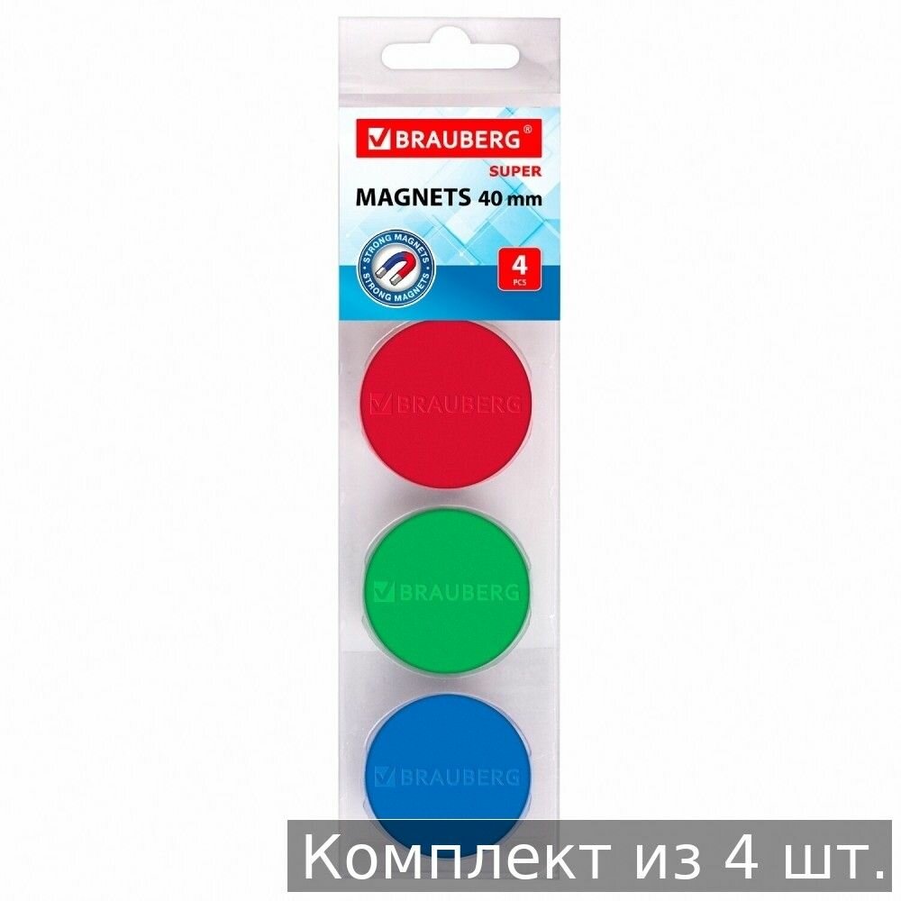 Купить Набор из 4 шт, Магниты мощные 40 мм (большого диаметра), набор 4 шт, ассорти, BRAUBERG «SUPER», 237480 с доставкой по всей России.