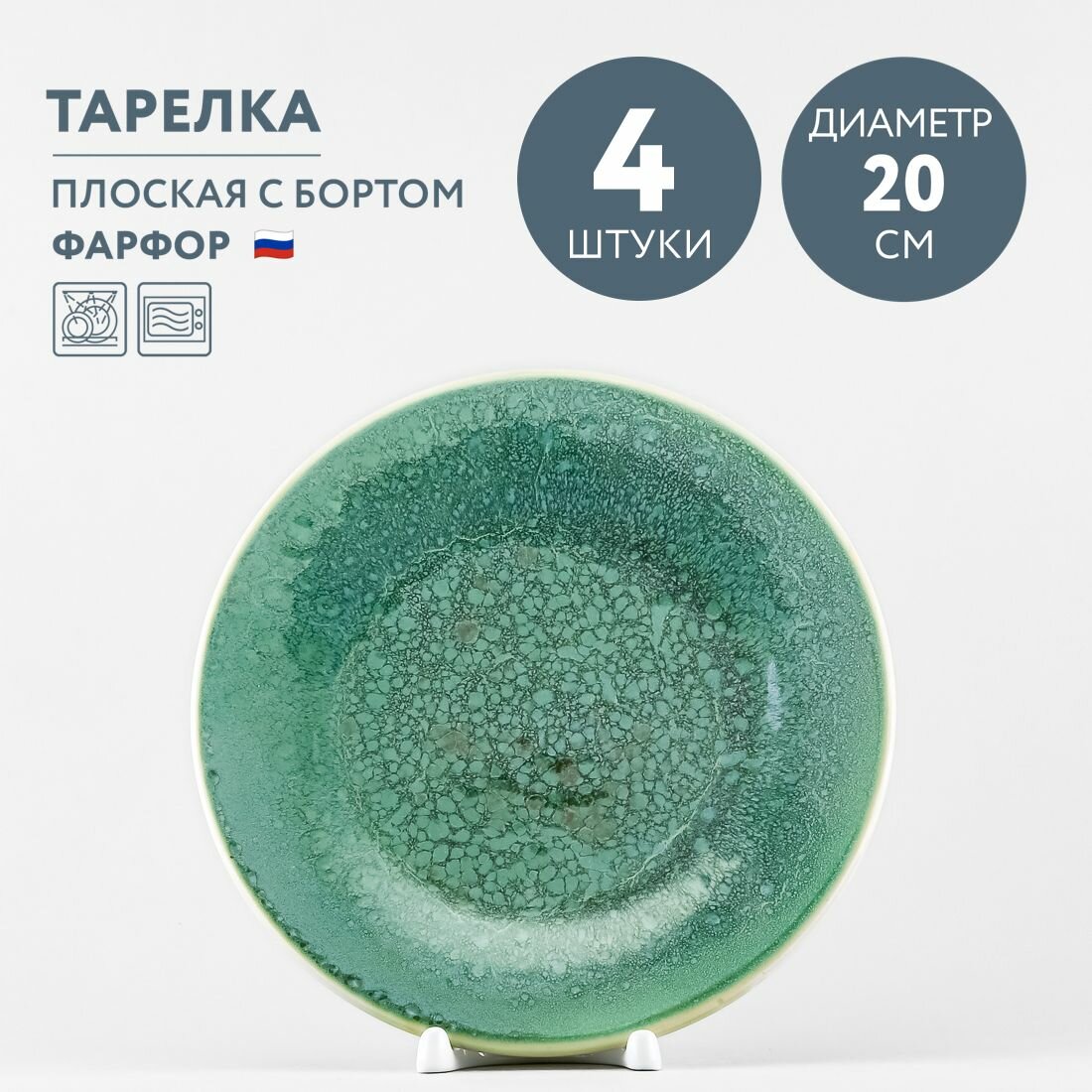 Тарелка имеет плоскую круглую форму с широким бортиком и подходит для закусок, салатов или десертов. Диаметр тарелки - 20 см, высота - 2 см.