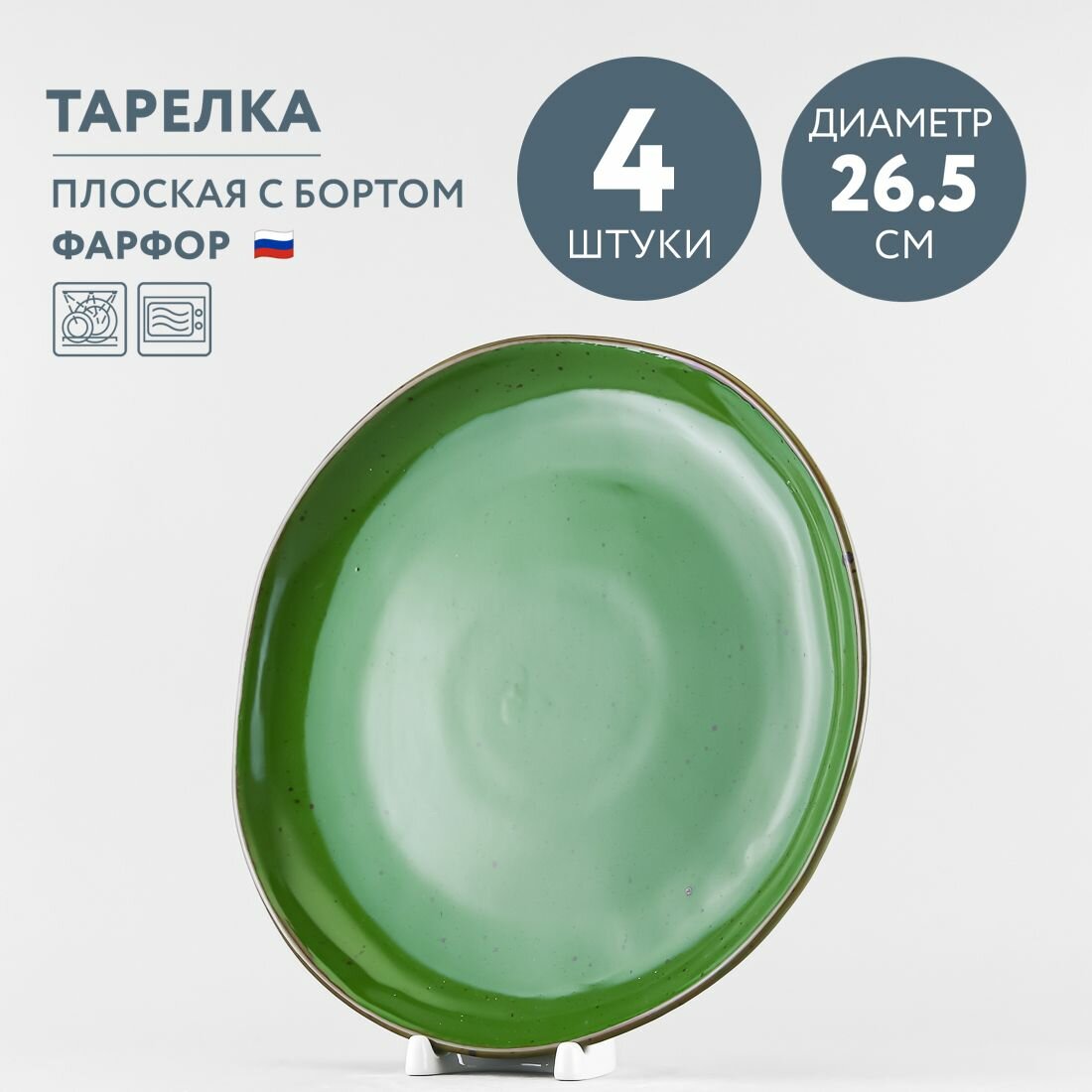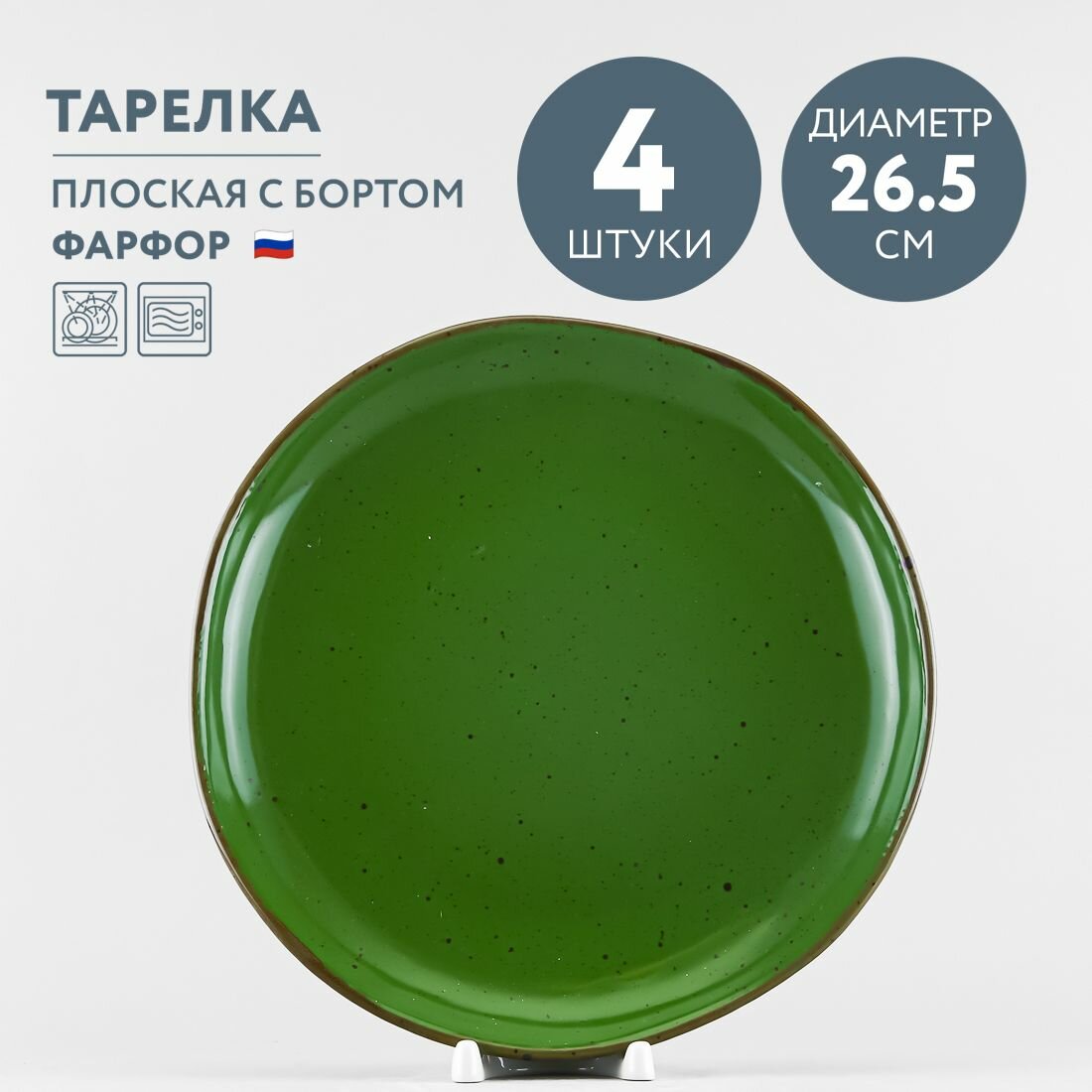 Тарелка имеет плоскую круглую форму с невысоким бортиком и подходит для горячих блюд. Ее также можно использовать в качестве подстановочной тарелки для тарелки меньшего диаметра. Диаметр тарелки - 26.5 см, высота - 3.3 см.