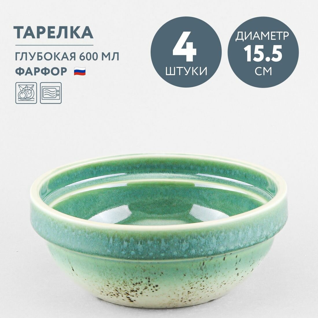 Тарелка имеет глубокую форму без борта и подходит для первых блюд и салатов. Диаметр тарелки - 15.5 см, высота - 6 см, объем - 600 мл. Обратите внимание, объем чашки измеряется до краев изделия, полезный объем может быть на 10-15% меньше заявленного производителем.