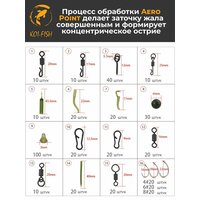 представляет Вам крючки, которые изготовлены из высокоуглеродистой стали по уникальной инновационной технологии. Эта технология увеличивает предел прочности и высокое сопротивление коррозии. Острота крючка достигается особым химическим процессом обработки (Aero Point), который делает заточку жала совершенным и формирует концентрическое острие. Таким образом, острие крючка становится сверхострым и сверхпрочным.
