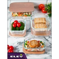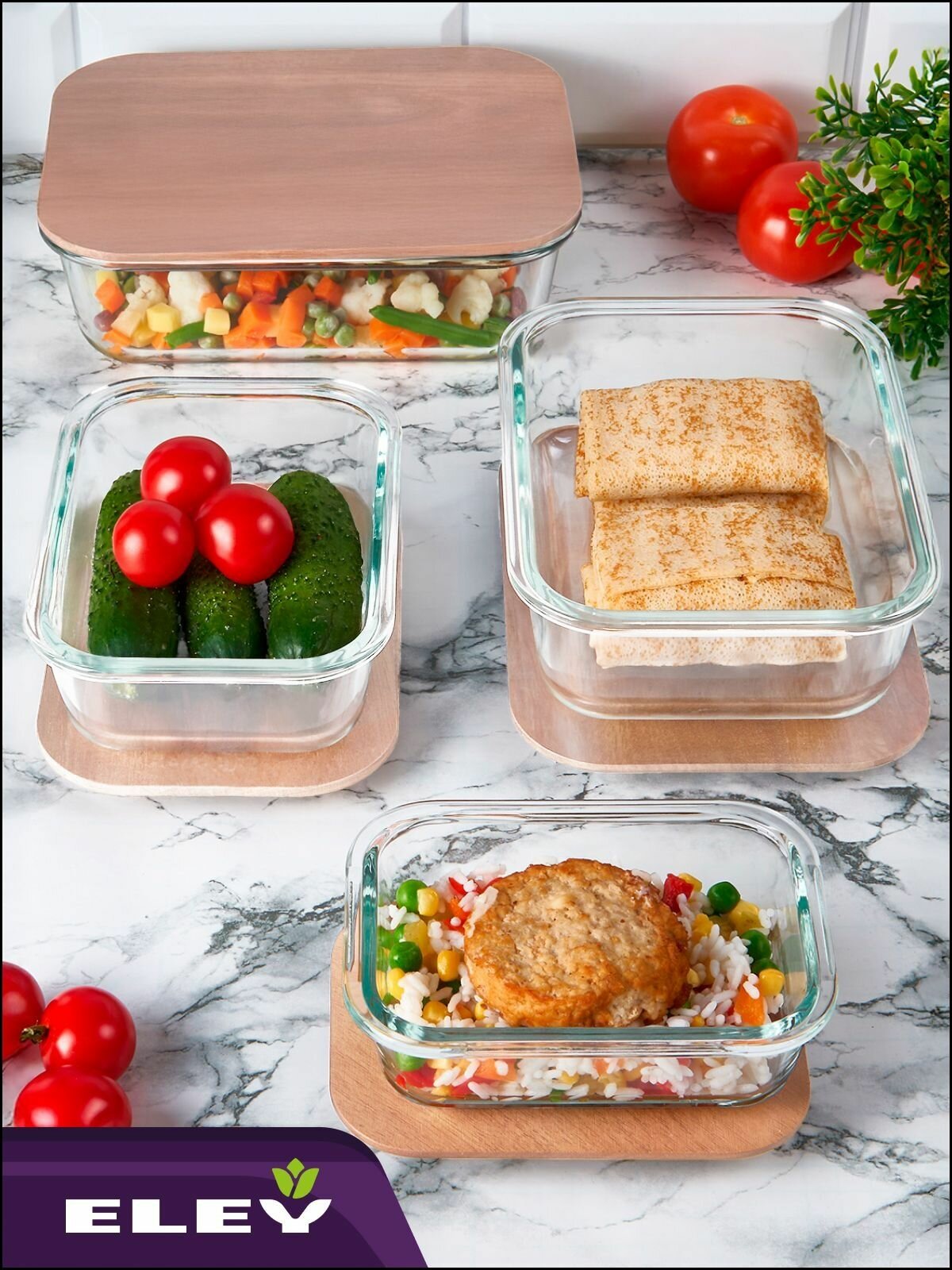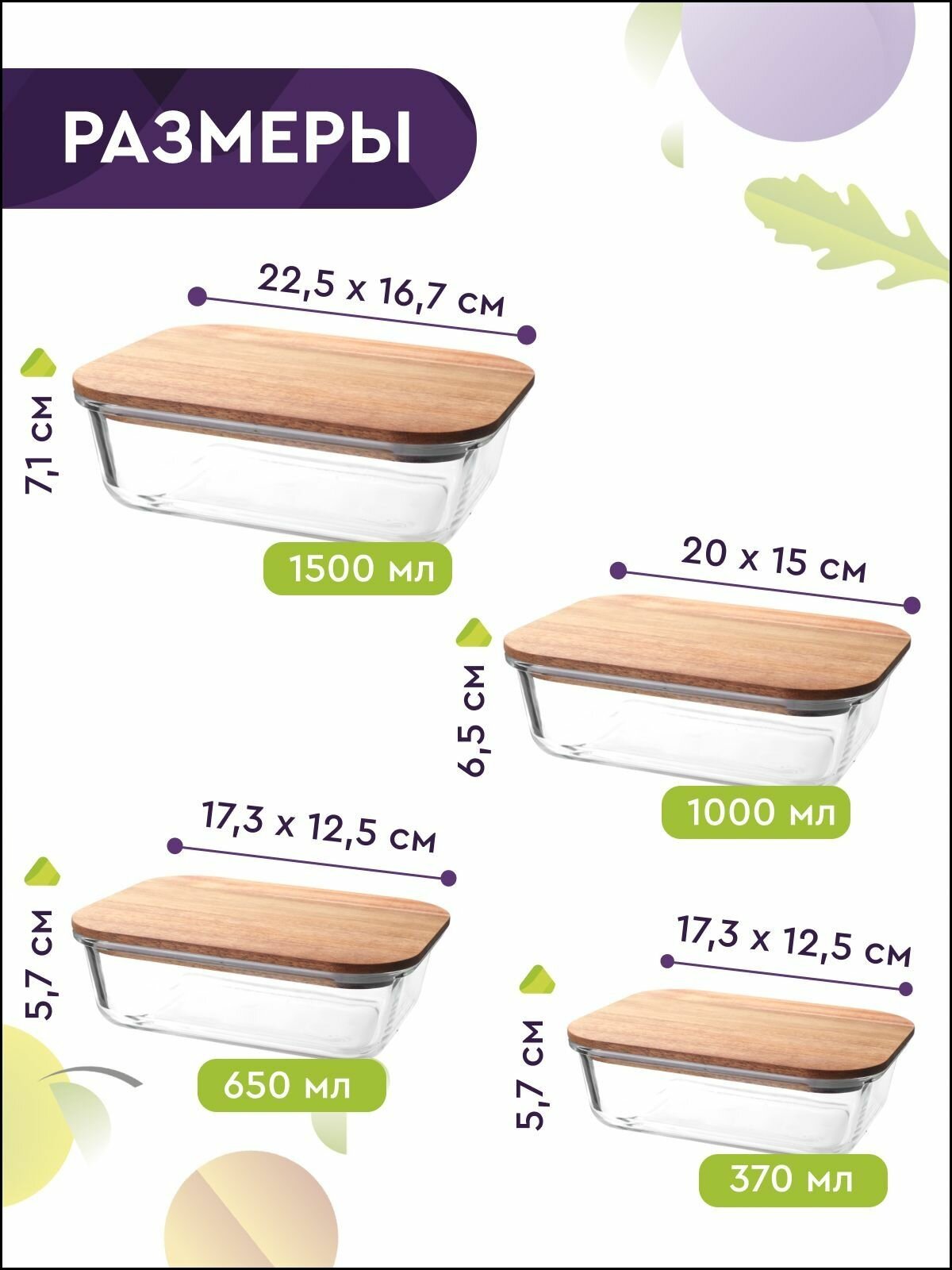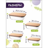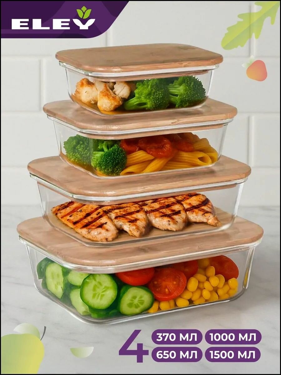 Набор из 4х стеклянных контейнеров 370мл, 650мл, 1000мл, 1500мл с крышками из бамбука: сравнение цен, характеристики, фото, актуальное наличие и цены.