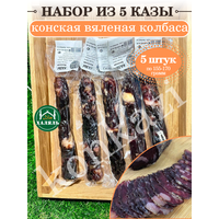 Набор из 5 Казы. Казы-конская вяленая колбаса из конины. Наша продукция Халяль. Вес 1 шт : 155-170гр Общий вес набора из 5 казы- +-770-850 гр Состав: Конина, жир конский, чеснок, соль, сахар. Сыровяленая колбаса из конского мяса высшего сорта. Конина - самое чистое мясо, которое к тому же гипоаллергенно и прекрасно усваивается, в том числе и детским организмом.