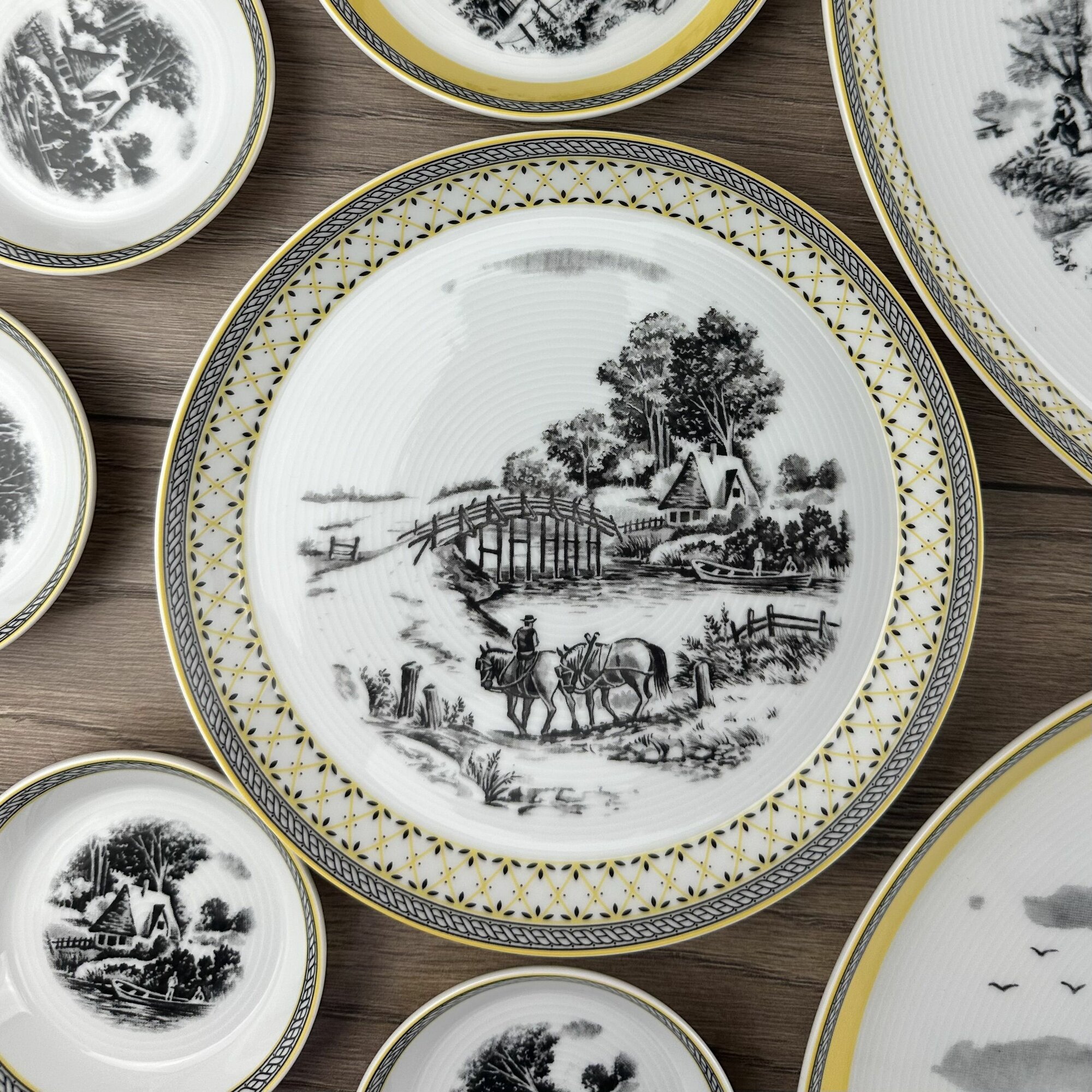 Набор десертных тарелок с бортиками серии Village (Country). Если Вы нажмете на логотип нашего магазина , то перейдёте в наш профиле и сможете посмотреть всю коллекцию Village. Диаметр 18 см. Материал: фарфор Рисунок нанесён под глазурью. Можно нагревать в СВЧ и мыть в посудомоечной Машине. Тарелки также благодаря гладкому покрытию очень удобны для ручной мойки. ОТК пройдён. Мы предлагаем товары хорошего качества и стараемся оставить наших покупателей довольными. Искренне будем Рады если посуда принесёт тепло и уют в Ваш дом.