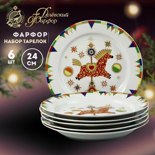 Купить Набор из 6 тарелок 24 см. Форма «Гладкий край», рисунок «Чайная карусель». Фарфор. Дулёвский фарфоровый завод. ДФЗ с доставкой по всей России.