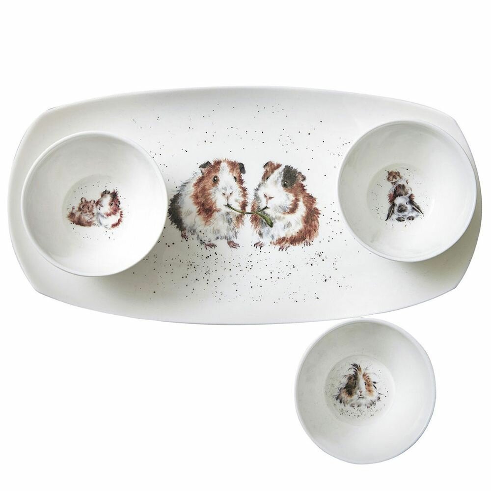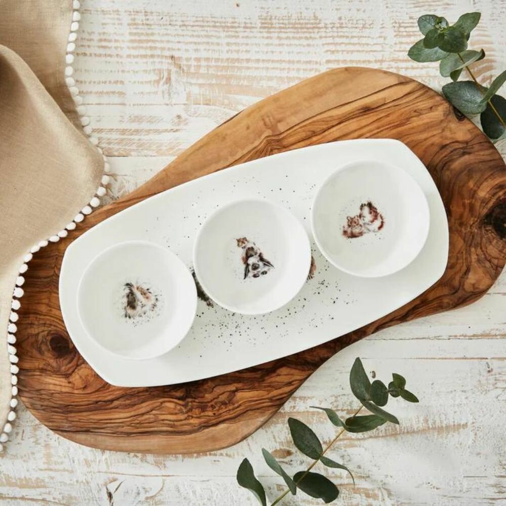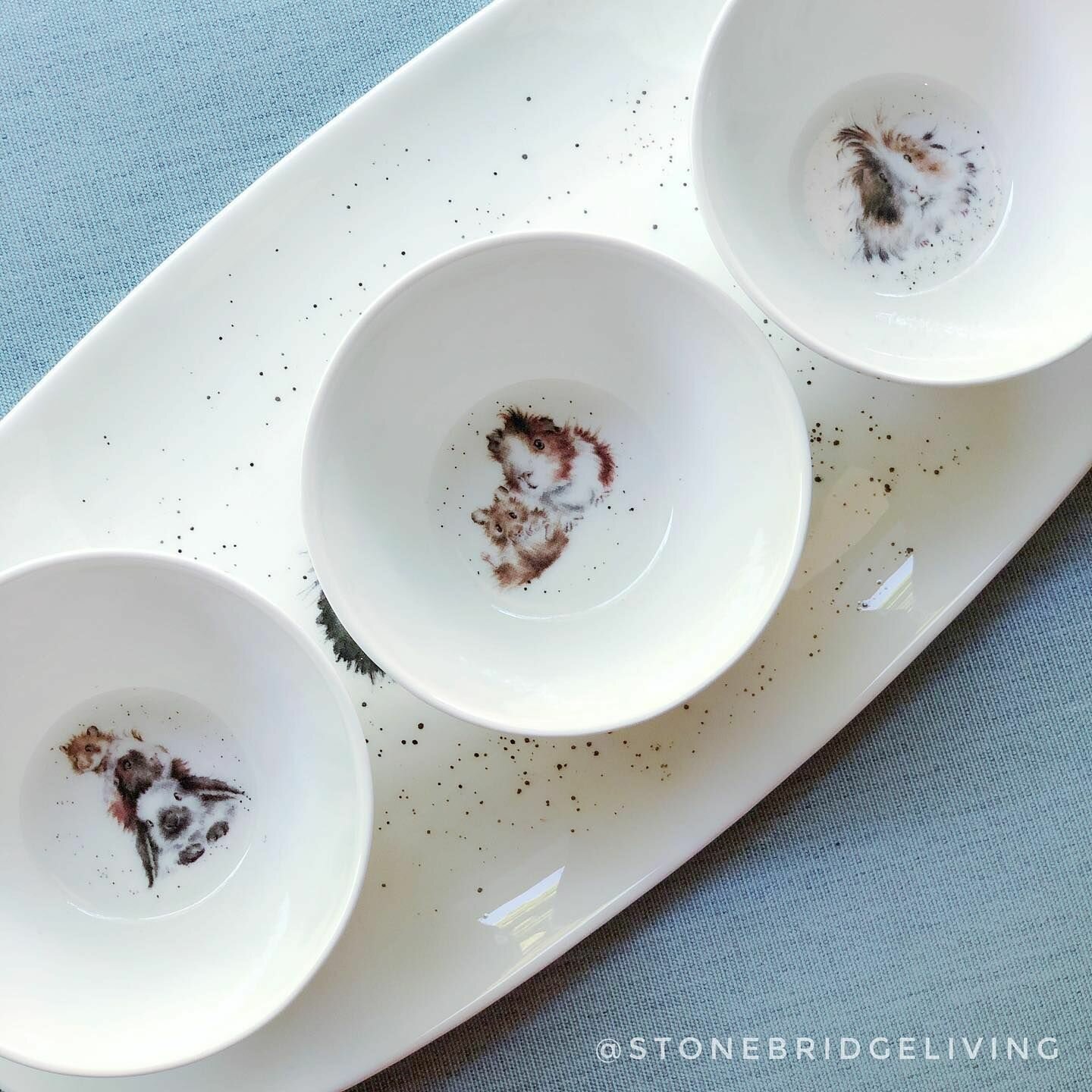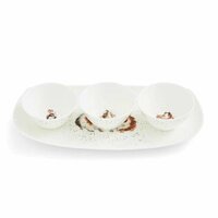 Набор из блюда и трёх пиал для соуса. Коллекция «Wrendale Designs», британской компании Royal Worcester. Размеры: блюдо 30х15 см, пиалы 100 мл.