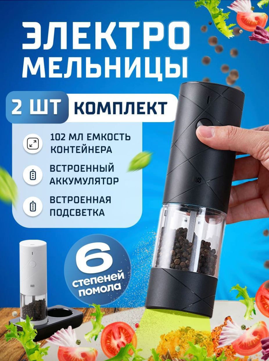 Набор из двух электрических мельниц для специй со встроенным аккумулятором и подставкой HuoHou Electric Grinder Rechargable (HU0290) русская версия, белая/черная: сравнение цен, характеристики, фото, актуальное наличие и цены.