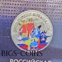 Купить Набор из двух сувенирных цветных монет по 25 рублей 2019 г. Бременские музыканты и Дед Мороз и лето в цветных блистерах. Новодел. с доставкой по всей России.