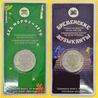 Набор из двух сувенирных цветных монет по 25 рублей 2019 г. Бременские музыканты и Дед Мороз и лето в цветных блистерах. Новодел.: сравнение цен, характеристики, фото, актуальное наличие и цены.