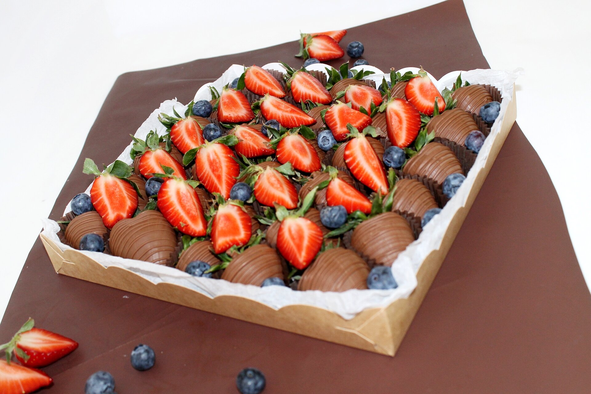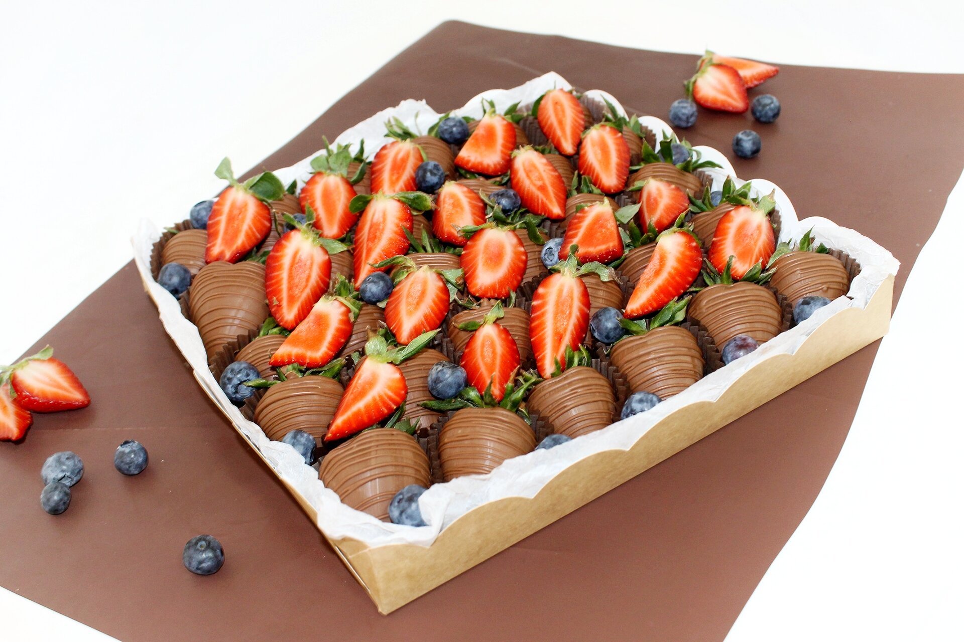 Купить Набор из клубники в молочном бельгийском шоколаде 25-30 ягод Изысканный десерт и прекрасный подарок упакованный в коробке с доставкой по всей России.
