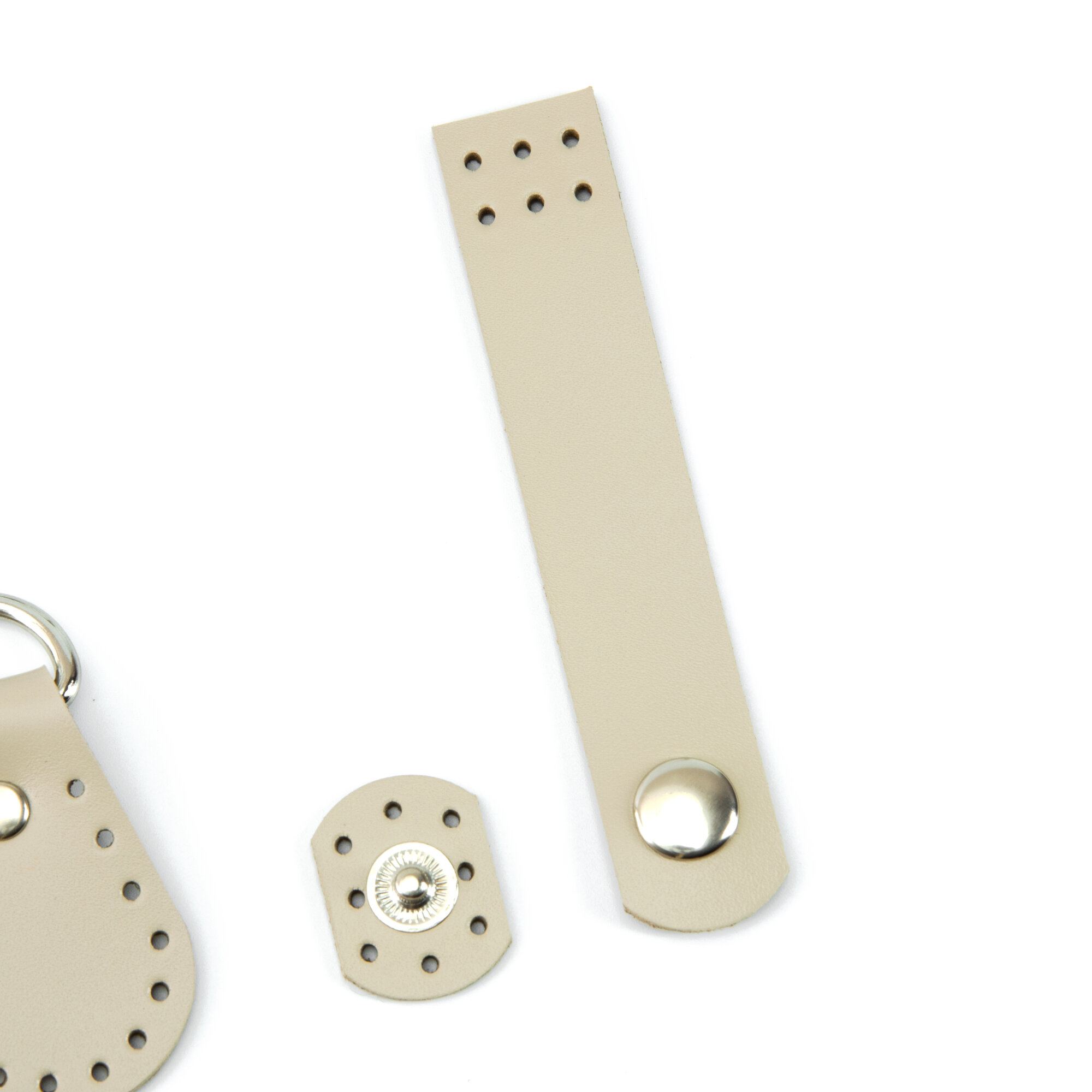 Купить Набор из натуральной кожи для вязаной сумки: комбинированный ремень, боковушки и застежка, цвет — бежевый с доставкой по всей России.