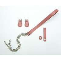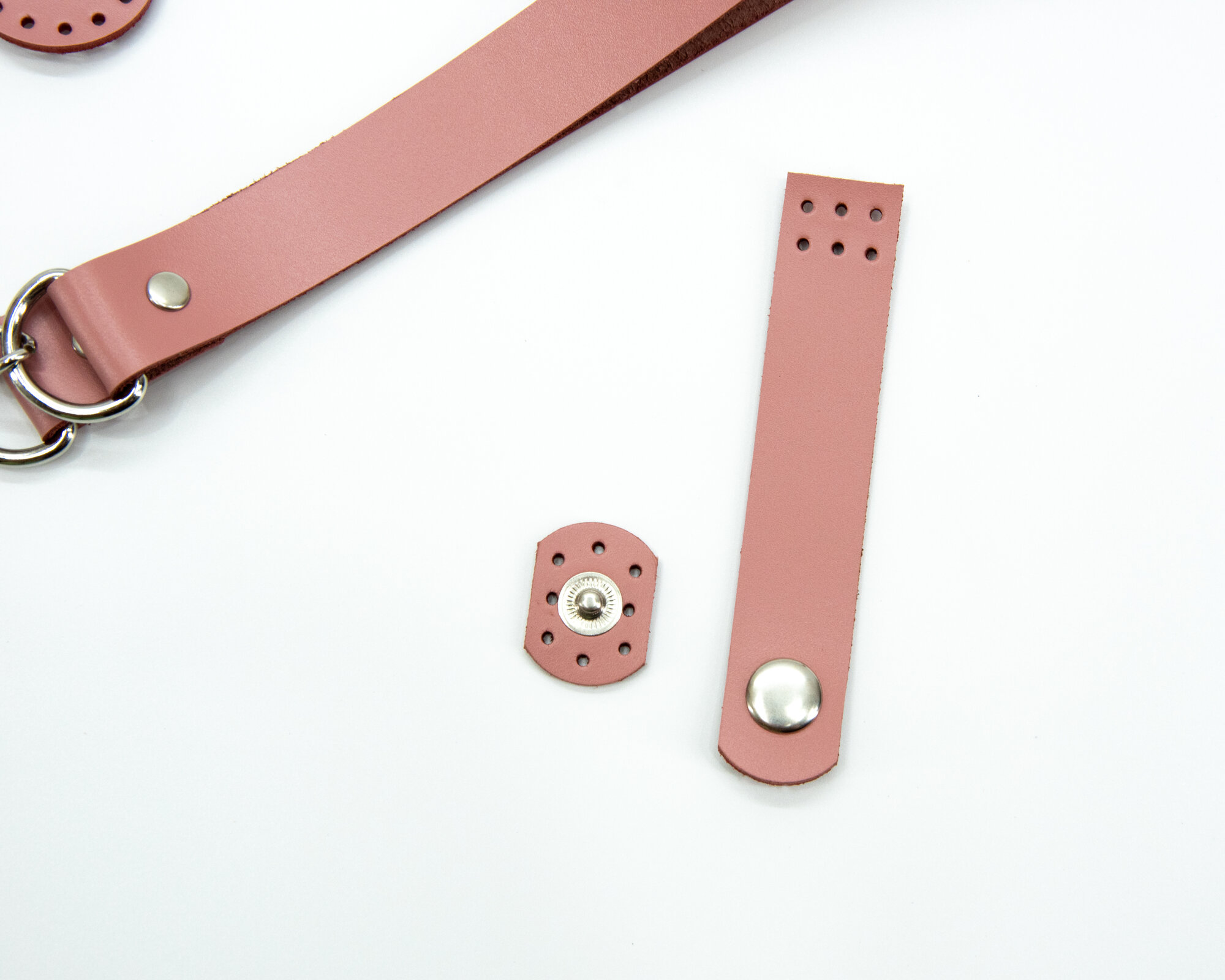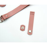 Купить Набор из натуральной кожи для вязаной сумки: комбинированный ремень, боковушки и застежка, цвет — пудровый с доставкой по всей России.