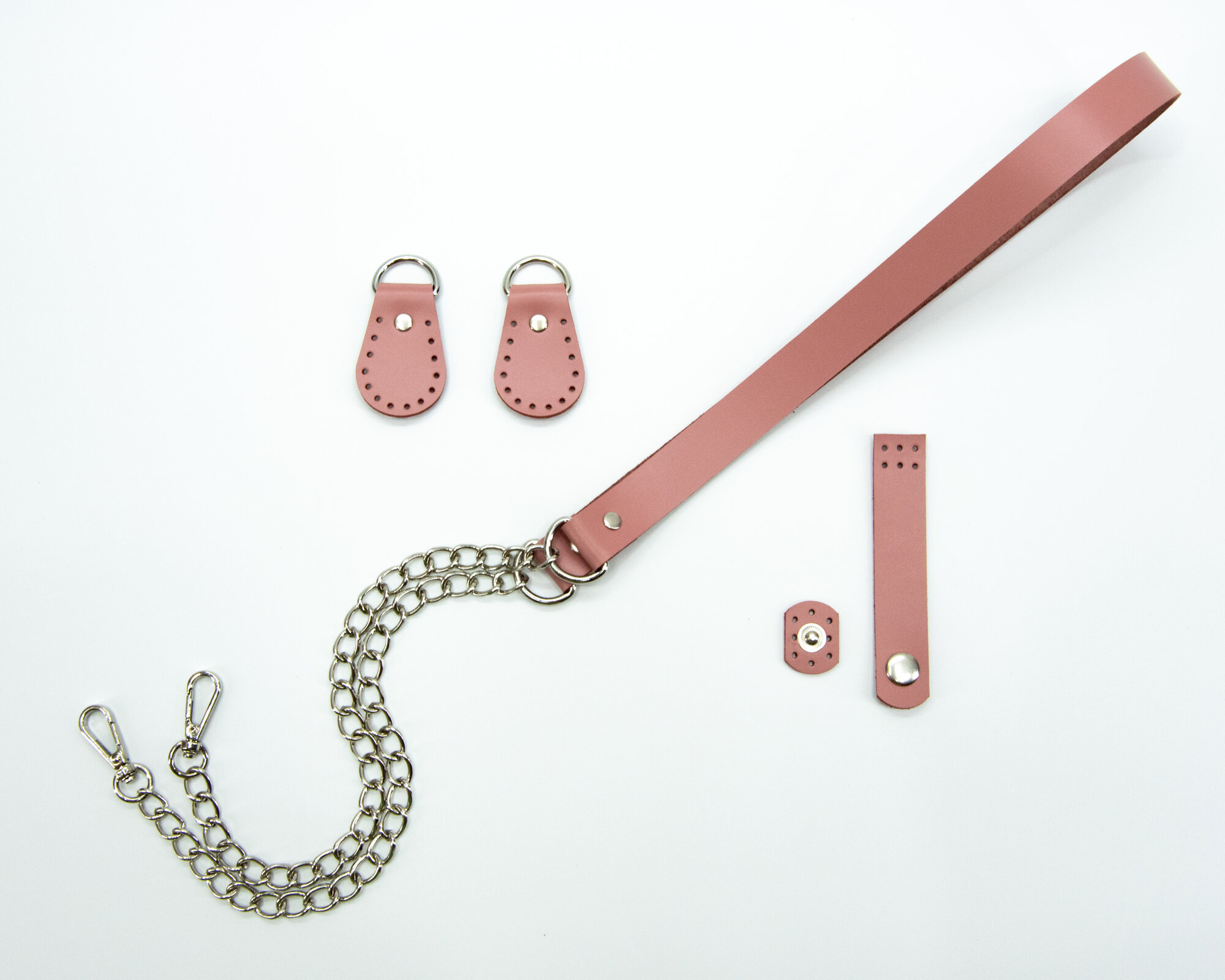 Набор из натуральной кожи для вязаной сумки: комбинированный ремень, боковушки и застежка, цвет — пудровый: сравнение цен, характеристики, фото, актуальное наличие и цены.