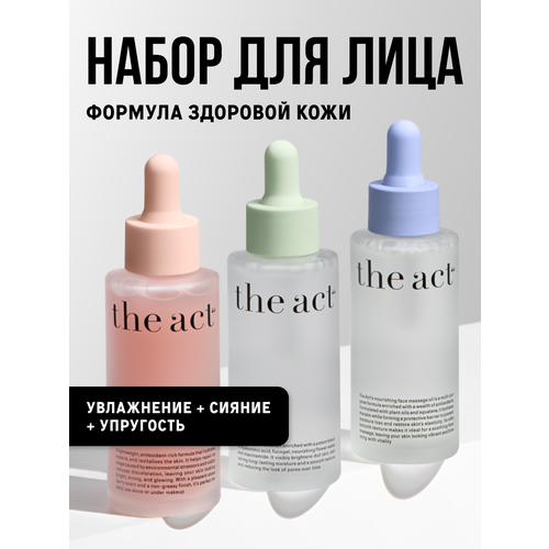 Здоровая кожа = увлажнение + сияние + упругость. The Act знаком с этой формулой и воплощает ее в виде набора из трех легендарных сывороток. Сыворотки разработаны с учетом особенностей всех типов кожи и усиливают эффект друг друга.