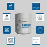| Способ применения | "Подходит для профессионального и домашнего использования. Способ применения: 1. Нанесите состав на вымытые шампунем, влажные, отжатые полотенцем волосы, отступая 5-7 см от корней. Расчешите и промассируйте волосы. 2. Оставьте на 20 минут под термошапкой. 3. Промойте волосы холодной водой (в течение 10 секунд тонкие волосы, густые следует промыть, только если на волосах осталось большое количество продукта). 4. Высушите волосы на 100%, используя брашинг. Рекомендованная схема проведения курса процедур «Холодный ботокс»: • Процедура • 7 дней • Процедура • 7 дней • Процедура • 14 дней • Процедура Повторите курс спустя 1,5-2 месяца." |