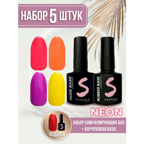 Купить Набор камуфлирующих баз для ногтей Sakura, неоновые, каучуковые, 5 шт по 8 мл с доставкой по всей России. Набор камуфлирующих баз для ногтей Sakura, неоновые, каучуковые, 5 шт по 8 мл: сравнение цен, характеристики, фото, актуальное наличие и цены.