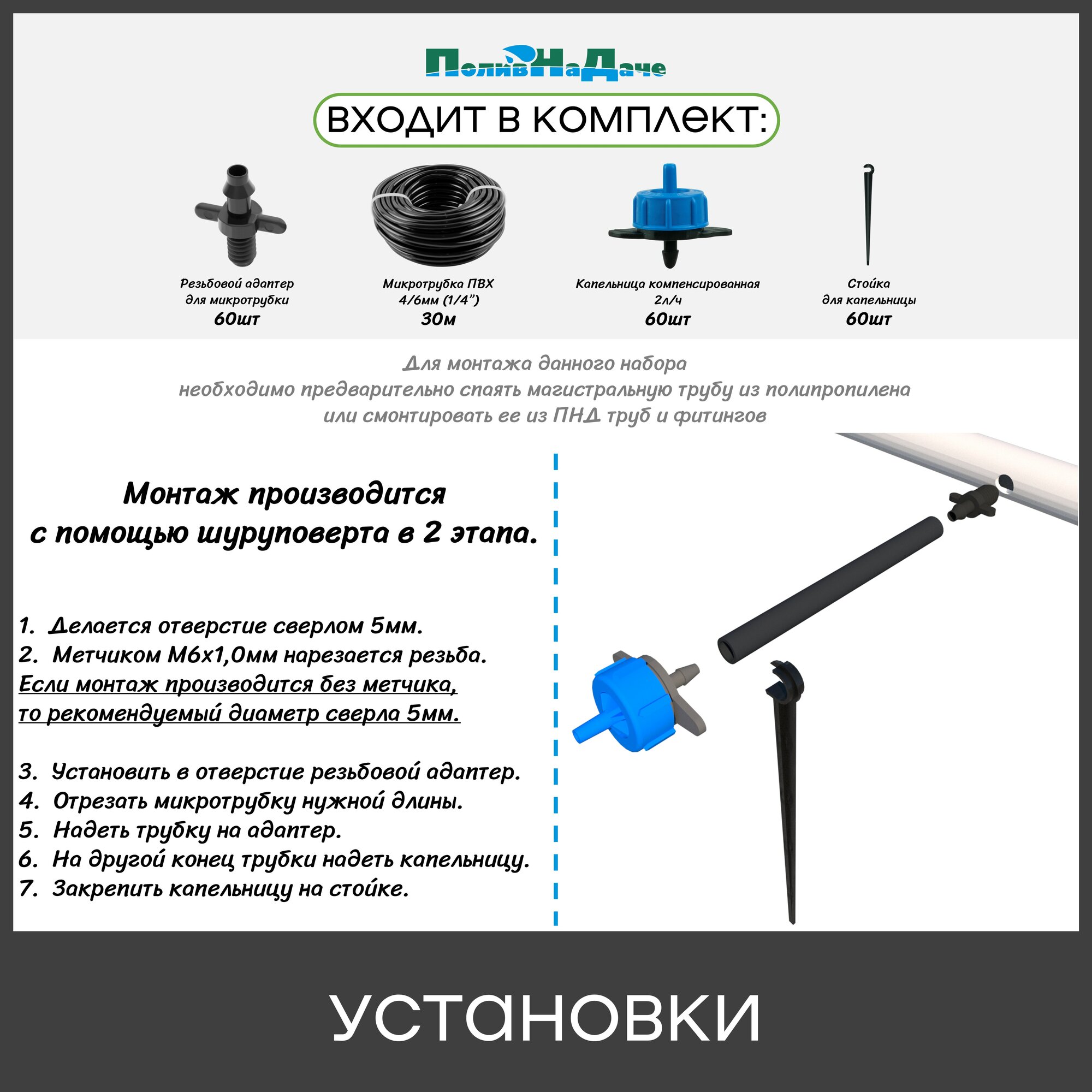 Набор капельного полива на 60 растений. Для монтажа в полипропиленовую или ПНД трубу. Для теплицы, грядок, сада.: сравнение цен, характеристики, фото, актуальное наличие и цены.