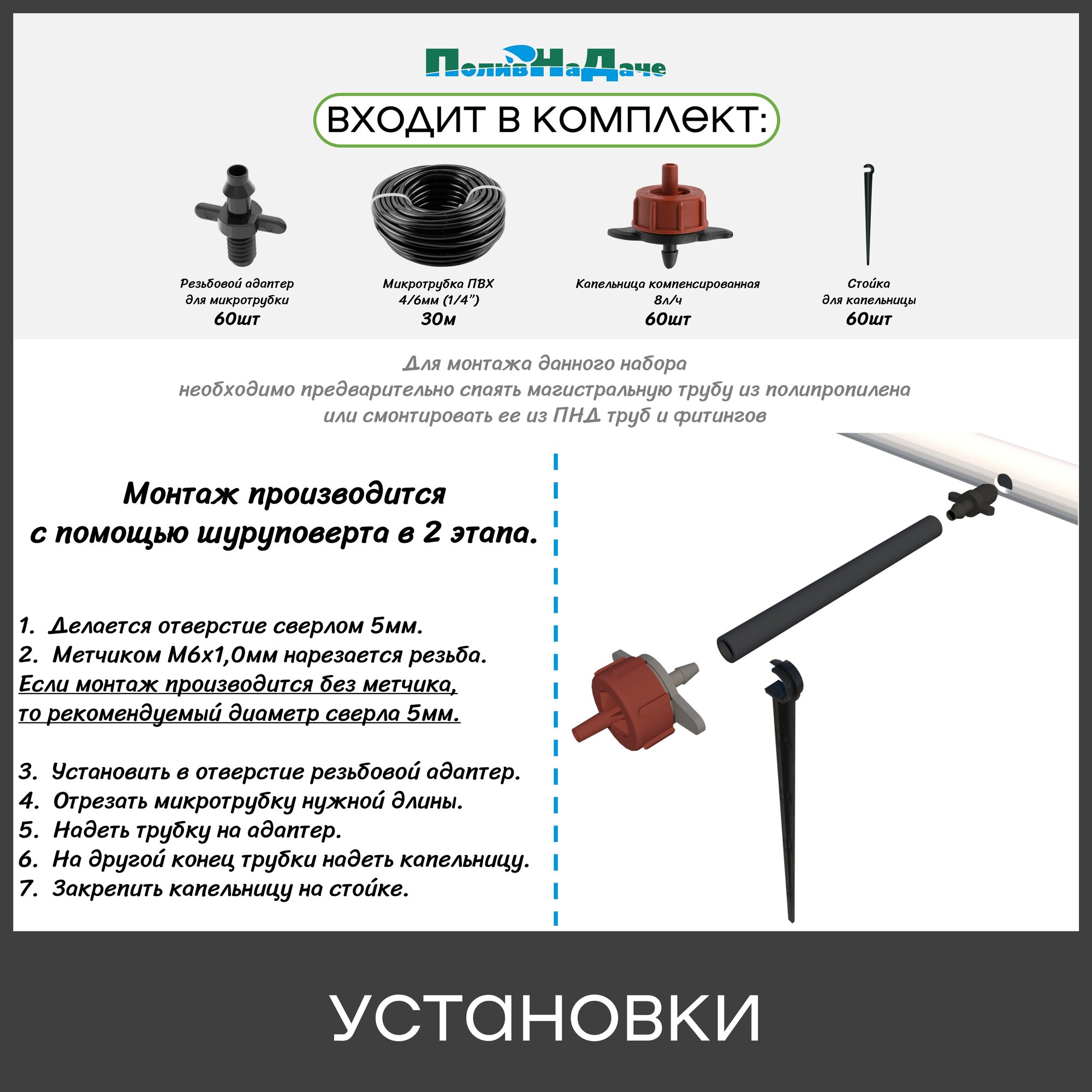 Набор капельного полива на 60 растений. Для монтажа в полипропиленовую или ПНД трубу. Для теплицы, грядок, сада.: сравнение цен, характеристики, фото, актуальное наличие и цены.