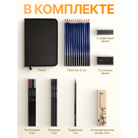 Художественный набор для рисования карандашом включает в себя все необходимые аксессуары для юных мастеров. Целая коллекция черных простых и цветных карандашей, а также других инструментов поможет создавать яркие, невероятные рисунки и графики. Благодаря разнообразию оттенков, разной твердости карандашей, можно рисовать тонкие и толстые линии, проводить штриховку и зарисовку, разукрашивать и выполнять различные техники рисования. Готовый набор для рисования и творчества - это идеальный подарок школьнице, художнику или художнице, подарок школьнику мальчику на 23 февраля, подарок для девочки 8 9 10 11 12 и 13 лет. При этом не важно, каким уровнем мастерства обладает юный художник. Набор поможет разобраться в базовых элементах рисования, чертежа и зарисовок. Профессиональный художественный набор карандашей включает в себя все необходимое для творческих личностей: простые и цветные карандаши, графитовые карандаши, для школы канцелярия, ластик, точилку, блок наждачной бумаги, пастельные карандаши, удлинитель для карандаша, угольные палочки и стик, а также компактный стильный чехол для переноски. С таким комплектом для рисования можно идти куда-угодно, в школу, на занятия по рисованию, отдых, прогулку или же пользоваться в домашних условиях. Графитные карандаши для рисования имеют различную жесткость и толщину, поэтому подходят для выполнения различных задач и удовлетворения потребностей начинающих художников. Остается только подобрать карандаш нужной твердости и мягкости и начать творческий процесс. Выбрать набор для рисования в чемоданчике (чехле) можно как подарок для мальчика, девочки или подростка на день рождения, 23 февраля, 8 марта, 1 сентября. Если искали набор для мальчика 10 лет, 11 лет, 12 лет или 13 лет, то представленный школьный комплект станет безупречным решением. Оригинальные наборы для рисования и творчества порадуют детей разного возраста, станут незаменимым аксессуаром, помогут развить творческие навыки и умения школьников. Выбирая подарочные комплекты для рисования, родители обращают внимание на безопасность аксессуаров. В наборе от производителя "Красная птица" все изделия выполнены из экологичного сырья и соответствуют требованиям по производству школьных принадлежностей. Пожелания юных пользователей также соблюдены, ведь карандаши и аксессуары удобны в пользовании и хранении.