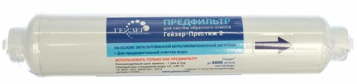 Комплект подходит для системы обратного осмоса 3 ступени Гейзер Престиж 2 с баком ( предочистка, мембрана и постфильтр)