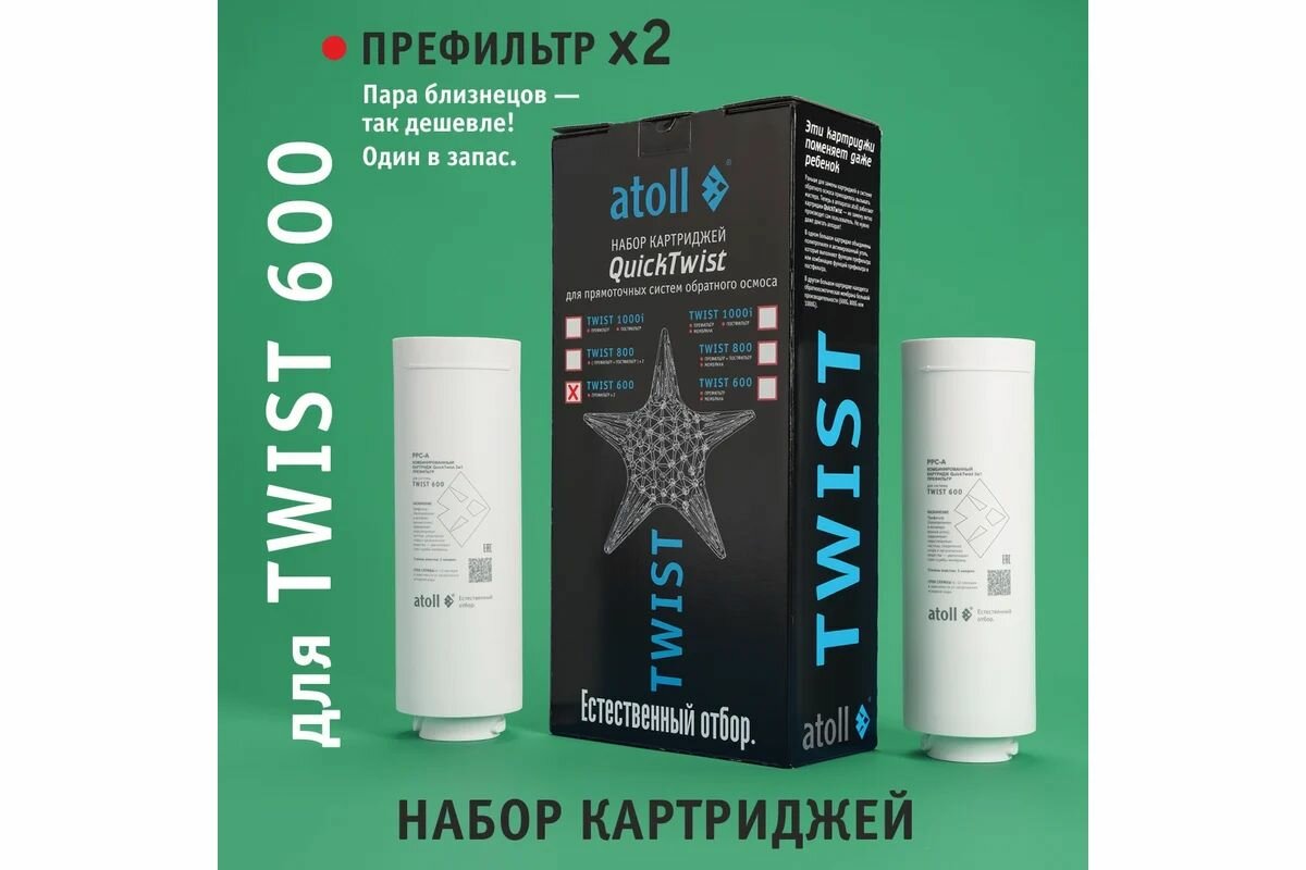 Набор картриджей для TWIST 600 Atoll префильтр 2 шт. ATECRT493: сравнение цен, характеристики, фото, актуальное наличие и цены.