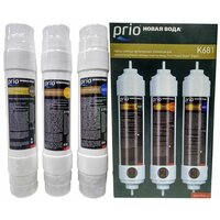 | Дополнительная информация | состав комплекта: картридж K871 - нетканый полипропилен 5 мкм; картридж К876 - пищевая ионообменная Na-катионитовая смола (двухкомпонентное умягчение); картридж К875 - гранулированный активированный уголь из скорлупы кокосового ореха с добавлением серебра |