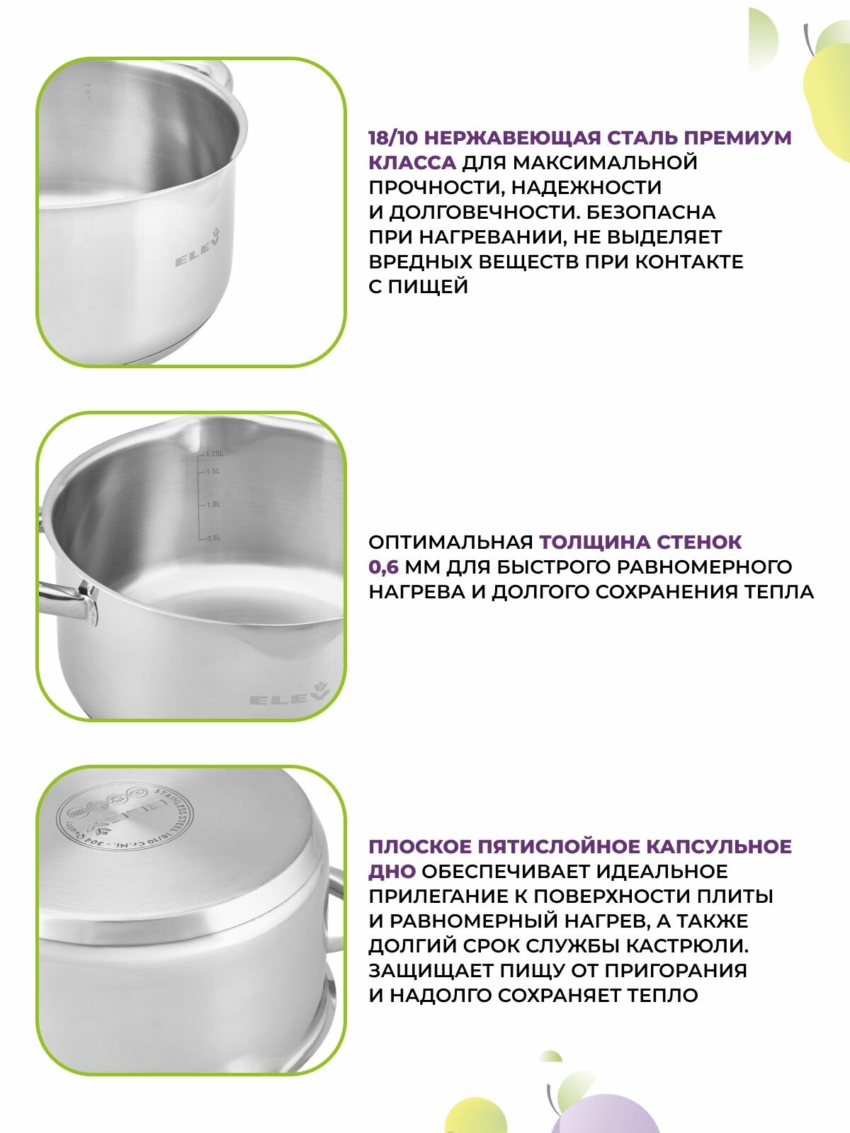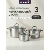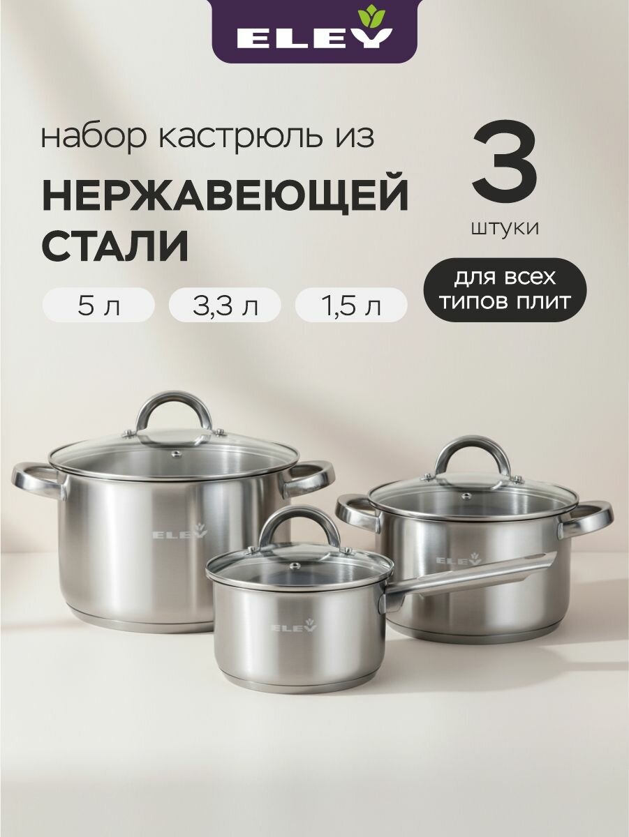 Купить Набор кастрюль 3.3л, 5л и ковша 1.5л из нержавеющей стали Eley с доставкой по всей России. Набор кастрюль 3.3л, 5л и ковша 1.5л из нержавеющей стали Eley: сравнение цен, характеристики, фото, актуальное наличие и цены.