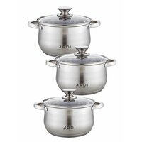 - 2,1 л, 2,9 л и 3,9 л, вы можете выбрать идеальный размер для любого блюда. В них можно готовить абсолютно всё: супы, бульоны, пасту, крупы и овощи, даже кислые варенья, компоты и морсы. Нержавеющая сталь не вступает в реакции с кислотами из фруктов и ягод, а потому опасных для здоровья соединений не образует. Эти изделия подходят для всех типов плит, включая индукционные, что делает их идеальными для современных кухонь. К тому же, кастрюли прекрасно сочетается с другими предметами кухонной утвари, такими как сковороды, сотейники и посуда для запекания. Вы можете легко комбинировать их с вашей любимой посудой. А еще кастрюли удобны в хранении, сложив их «матрешкой» (кастрюли вставляются друг в друга) они не будут занимать много места на вашей кухне. Не забывайте и о функциональности! Набор включает кастрюли с крышками, что позволяет вам готовить на пару и сохранять все полезные вещества в продуктах. А стильный внешний вид делает его не только практичным, но и красивым дополнением к вашему кухонному интерьеру.