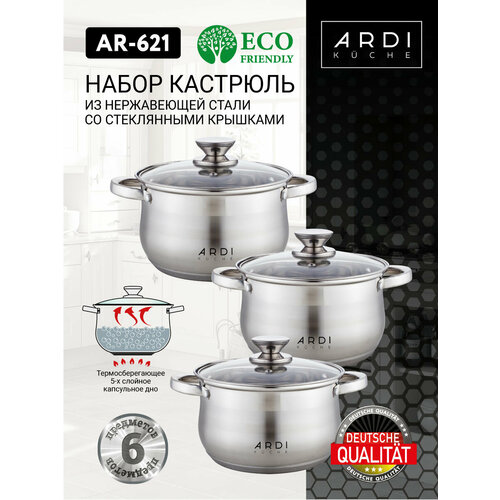 Представляем новый набор кастрюль ARDI KÜCHE AR-621, который станет незаменимым помощником в приготовлении ваших любимых блюд. Этот набор идеально сочетает в себе стильный дизайн и высокое качество, что делает его отличным решением для любой кухни. Кастрюли из нержавеющей стали позволяют готовить вкусную и здоровую пищу, а легкость в уходе освободит больше времени для себя и семьи. В набор входят кастрюли различных объемов