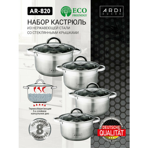 праздник. Приобретая набор AR-820, вы получаете не только качественную посуду для кухни, но и возможность наслаждаться процессом приготовления. Удобные не нагревающиеся ручки делают использование кастрюль комфортным. Закажите наш набор кастрюль уже сегодня и наслаждайтесь готовкой с удовольствием!