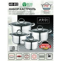 Купить Набор кастрюль ARDI Kuche из нержавеющей стали 8 предметов AR-812 2 00-00014784 с доставкой по всей России.
