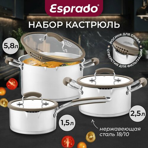 Купить Набор кастрюль для приготовления 6 шт. из нержавеющей стали Esprado с доставкой по всей России. Набор кастрюль для приготовления 6 шт. из нержавеющей стали Esprado: сравнение цен, характеристики, фото, актуальное наличие и цены.
