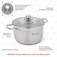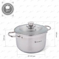 Набор кастрюль изготовлен из высококачественной нержавеющей стали – экологически чистого, долговечного материала, который чрезвычайно устойчив к коррозии и надолго сохраняет свои функциональные свойства. 3-х слойное термоаккумулирующее дно позволяет готовить с минимальным количеством воды и жира, или же совсем без них. Комбинированная полировка, матовая полировка внутри, крышки-стекло. В набор входят: кастрюля с крышкой Ø 16 см – 2,1 л; кастрюля с крышкой Ø 18 см – 3 л; кастрюля с крышкой Ø 20 см – 4 л. Подходит для всех видов плит, включая индукционную! Упаковка – подарочная коробка с пластиковой ручкой. Кастрюли с толстым дном изготовлены из высококачественной нержавеющей стали, экологически чистого, долговечного материала, который чрезвычайно устойчив к коррозии и надолго сохраняет свои функциональные свойства. Толщина дна кастрюли - 7 мм, толщина стенок - 1 мм. Трёхслойное капсулированное дно позволяет готовить с минимальным количеством воды и жира. Матовая полировка внутри и снаружи, крышки - стекло с металлической окантовкой. Преимущество данной посуды - это толстое многослойное дно, ненагревающиеся ручки. Крышка с металлическим ободком и пароотводом. Кастрюли мечта для хозяйки! Трёхслойное капсульное дно обеспечивает равномерное распределение тепла и быстрый нагрев содержимого, избегая пригорания пищи. Удобные ручки термокастрюли не скользят и не нагреваются в процессе приготовления пищи. Крышка из термостойкого стекла с отверстием для отведения пара выдерживает резкий перепад температур и обладает высокой термоустойчивостью. Посуда подходит для использования на любых типах плит, включая индукционные. Кастрюли из нержавейки можно мыть в посудомоечной машине. Кастрюля для индукционной плиты невероятно удобна в использовании, за ними легко и просто ухаживать. Ненагревающиеся ручки позволяют сливать жидкость без использования прихваток, а стеклянная прозрачная крышка поможет вам наблюдать за процессом приготовления. Кастрюля с толстым дном надолго сохранит тепло ваших блюд. Набор посуда для кухни кастрюли подходят для варки и тушения. Стеклянная посуда очень удобна для приготовления первых и вторых блюд, а так же для сезонных заготовок. Идеально подойдет вам как походная посуда. Посуда набор Zeidan станет самым лучшим подарком и помощником на вашей кухне. Соберите коллекцию кухонной и декоративной посуды в нашем магазине! У нас есть всё! Просьба обратить внимание, что на коробке и в описании указан заводской(общий) объем кастрюли, который отличается от рабочего(полезного) на +0,5 литров в зависимости от литража кастрюль. Просим это учитывать при покупке любых кастрюль и наборов. Посуда для дома поставляется в подарочной коробке, поэтому это будет отличный подарок подруге и родным по любому поводу. В нашем магазине вся посуда для кухни высокого качества, такая как кастрюля, сковорода или френч-пресс. У нас самый большой выбор красивой посуды для кухни и товаров для дома!