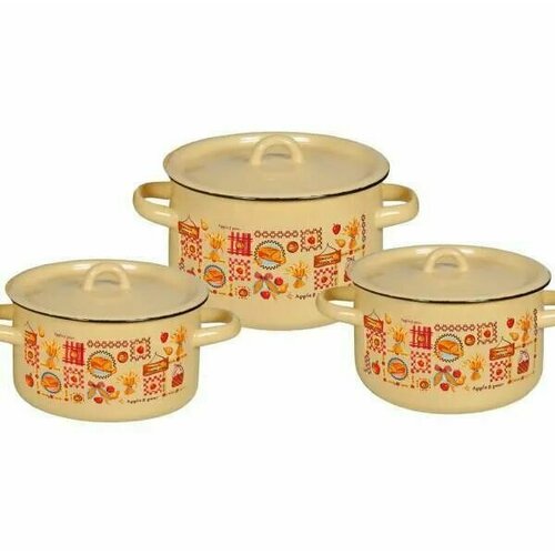 Набор из 3 эмалированных кастрюль с крышками, объем кастрюль 1,5л, 2,9л, 4,5л.