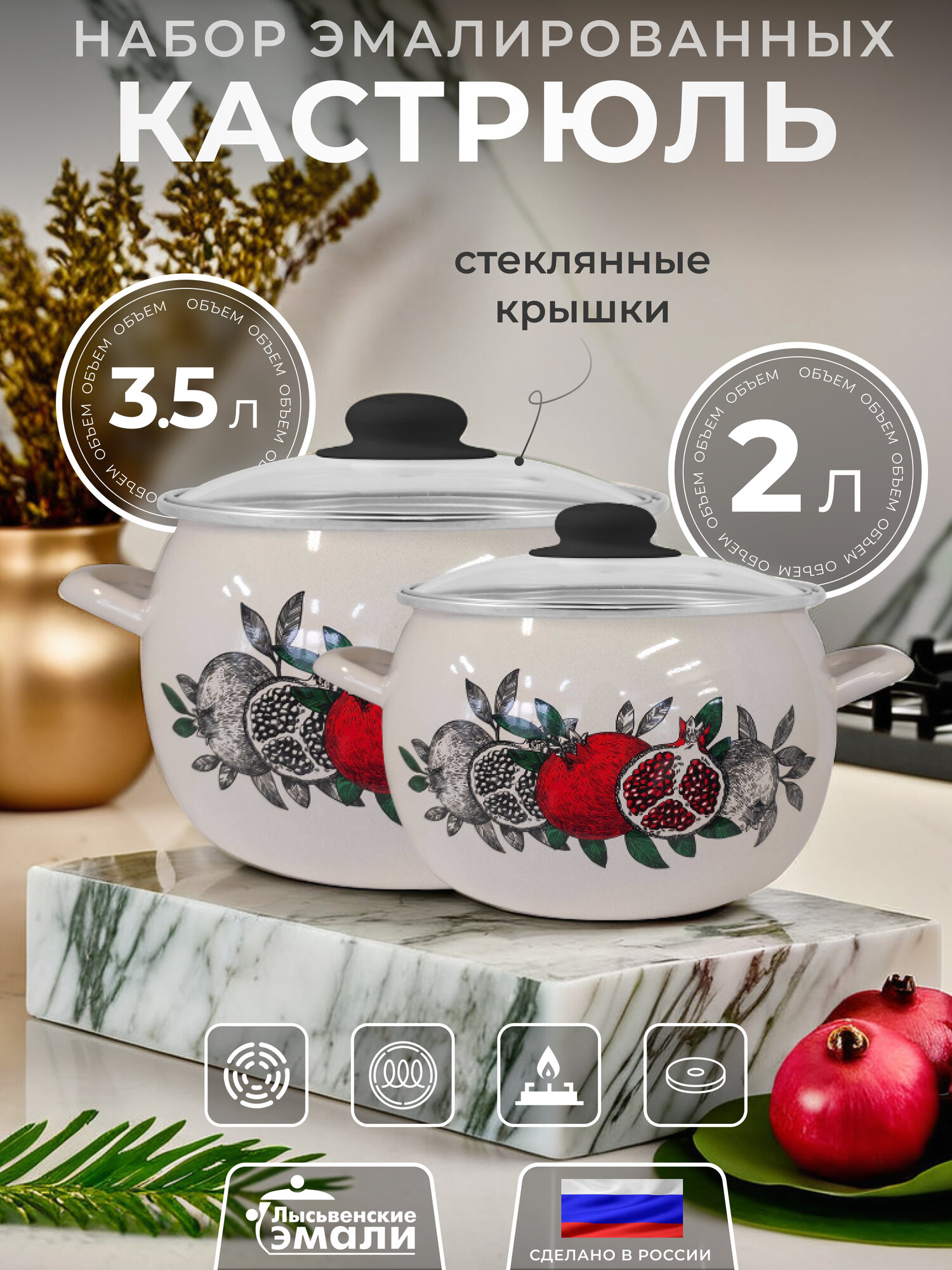 Набор кастрюль эмалированных Лысьвенские Эмали «Цвет граната» 2шт (2л, 3,5л) с крышками для газовых/индукционных плит: сравнение цен, характеристики, фото, актуальное наличие и цены.