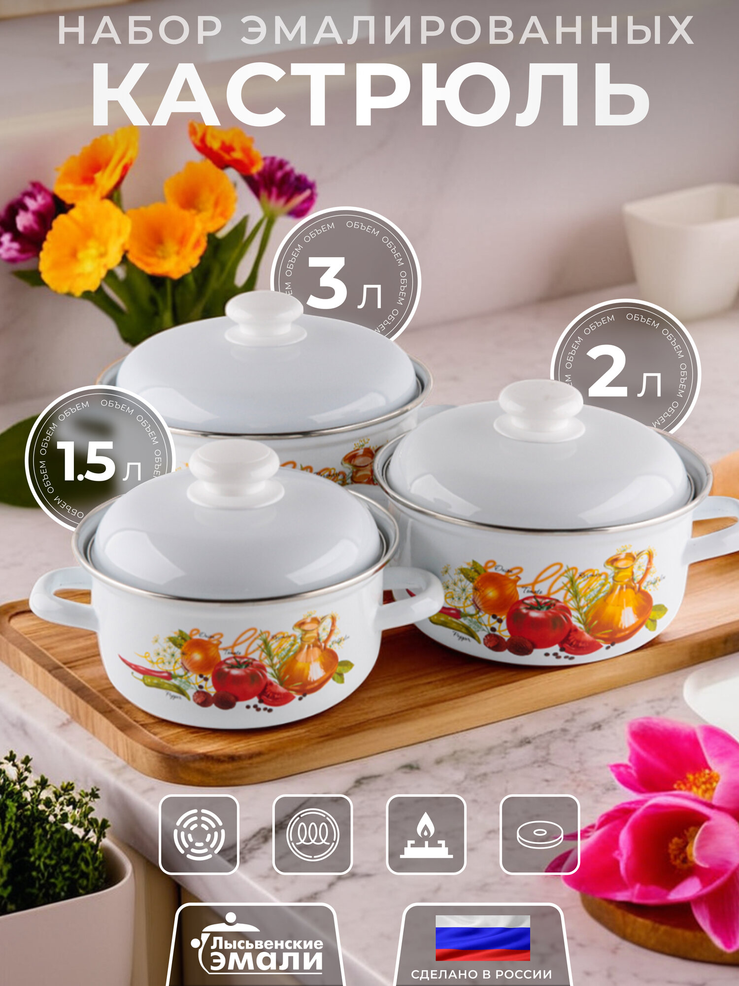 Купить Набор кастрюль Итальянская кухня, набор кастрюль эмалированных 3, 2, 1,5л с доставкой по всей России.